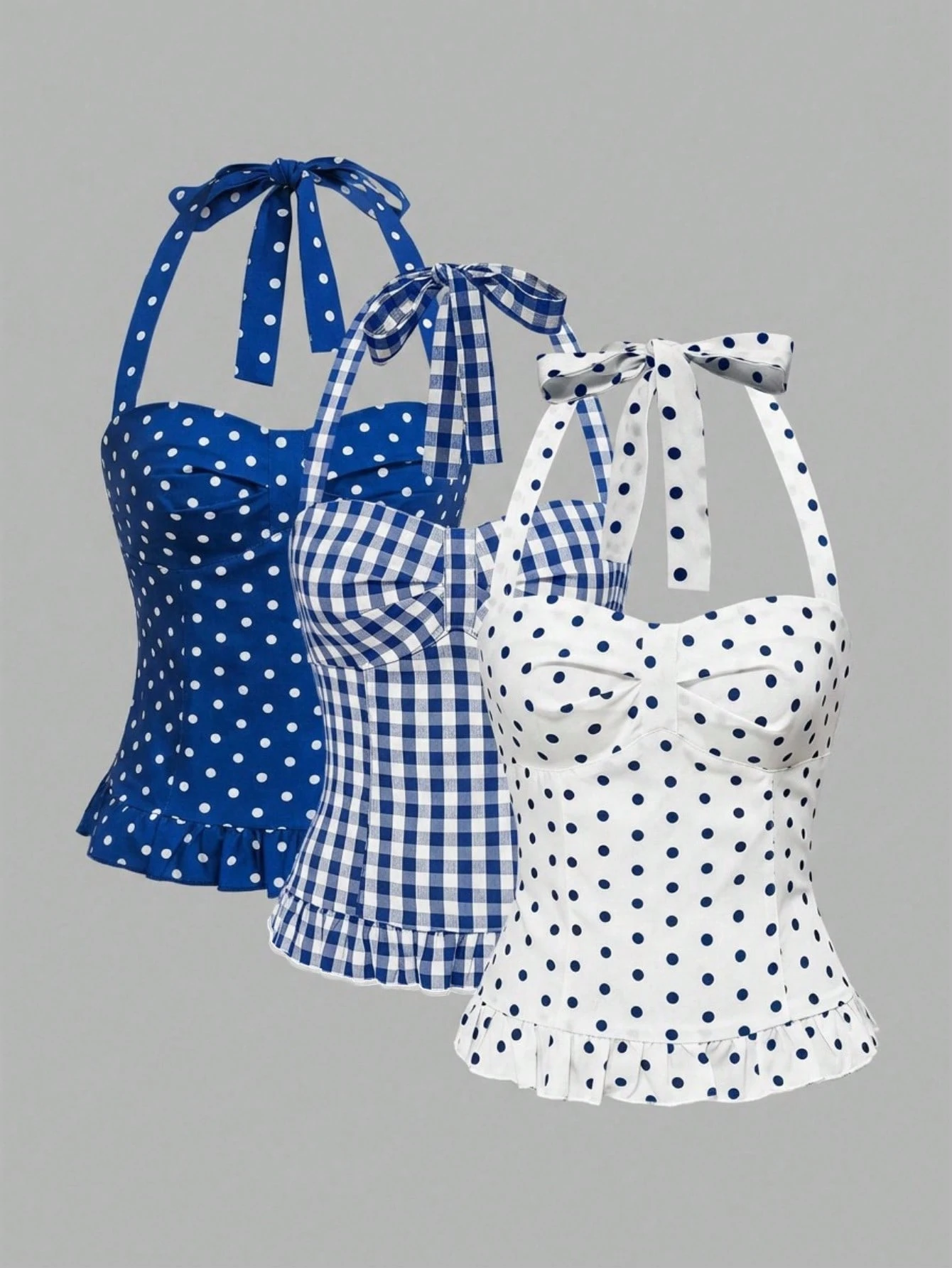 ROMWE Avant Damen romantischer Urlaubsstil Polka Dot & Karomuster rückenfrei Trägertop Set