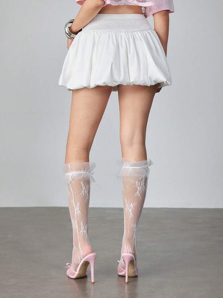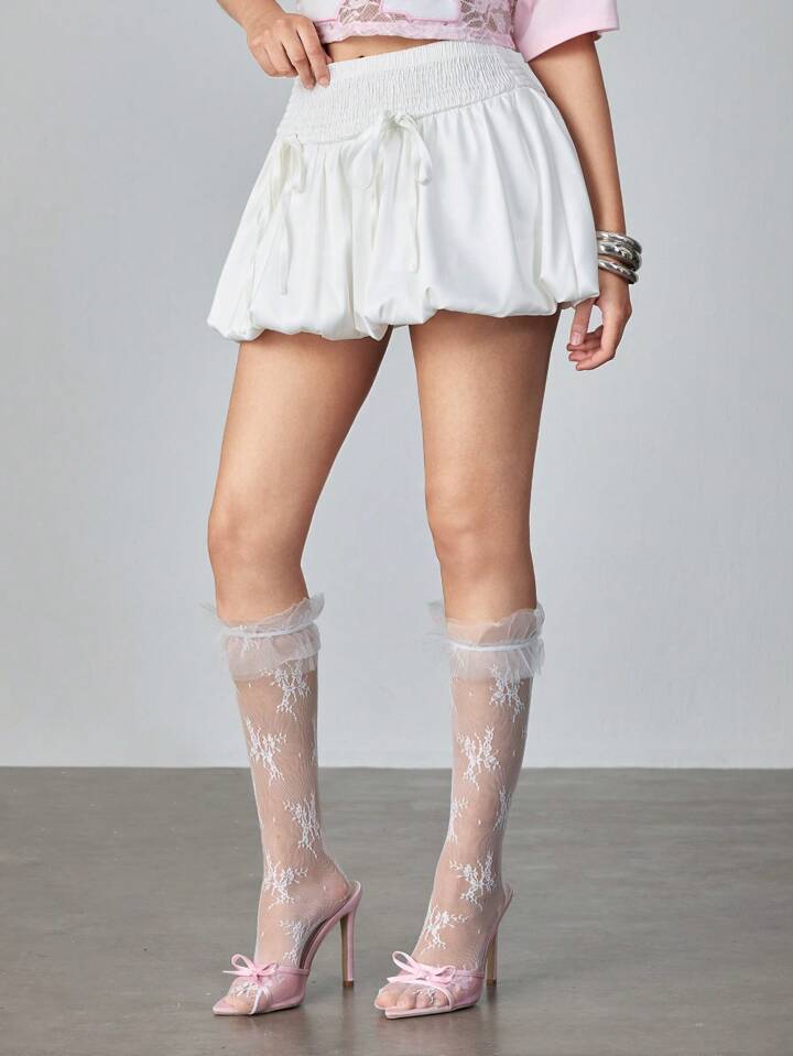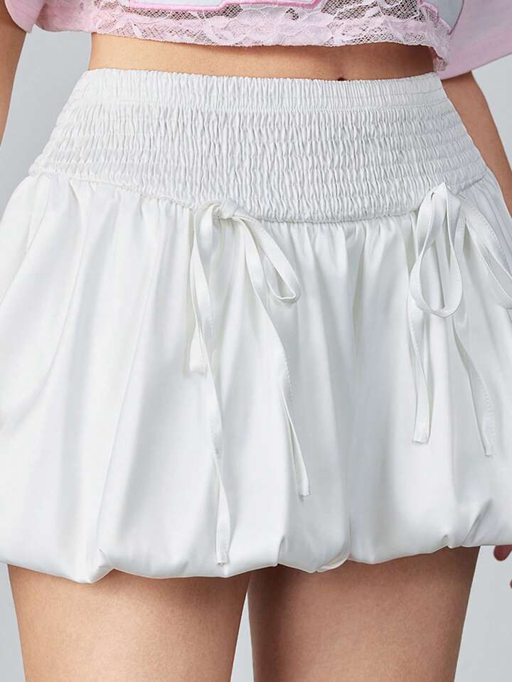 ROMWE Avant Damen Satin Glanz Mini Rock mit Rüschen und Bindegürtel, Sommer