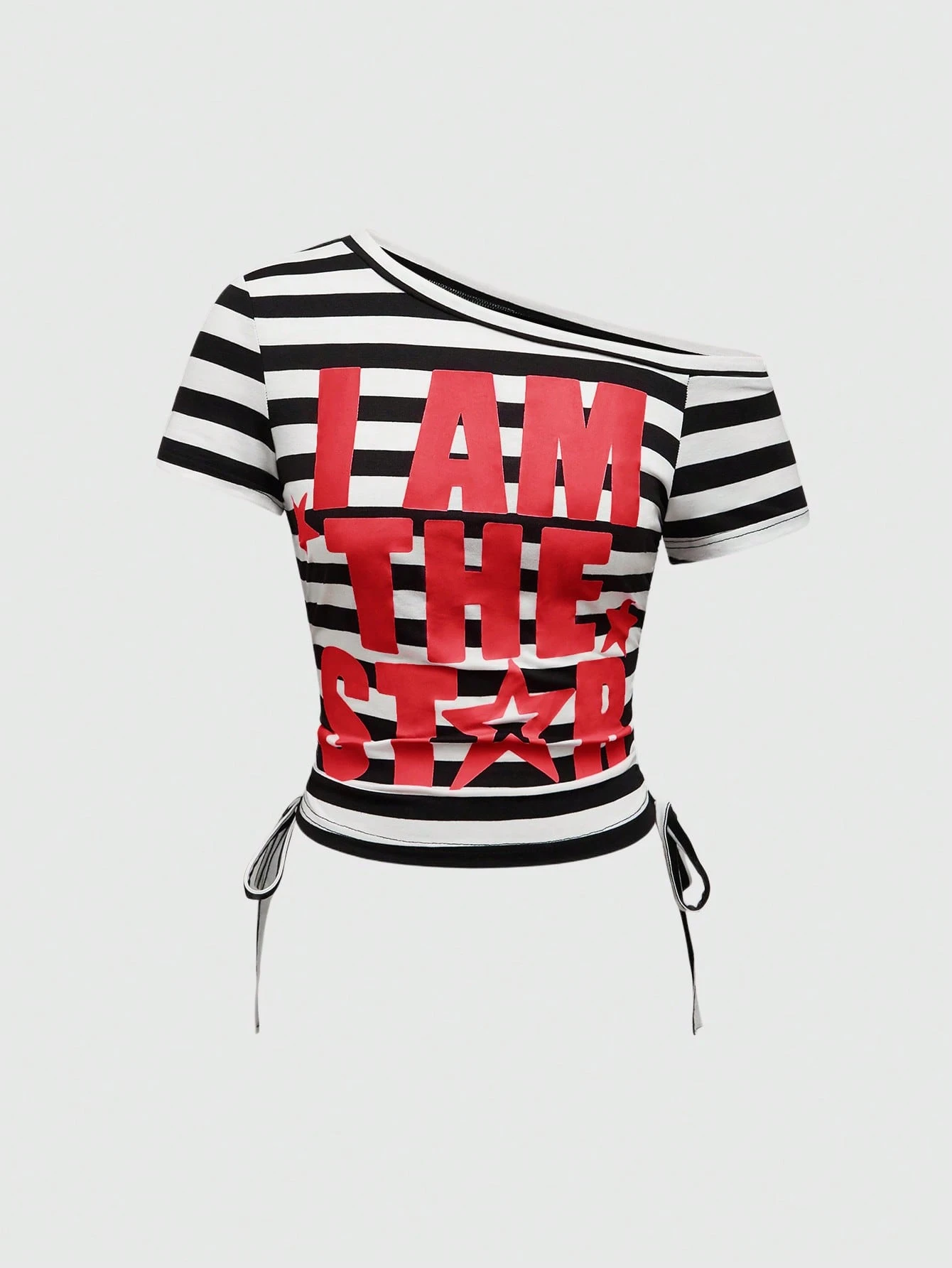 ROMWE Avant Damen Y2K Stil gestreiftes Patchwork Buchstaben-Muster Kordelzug Raffung T-Shirt