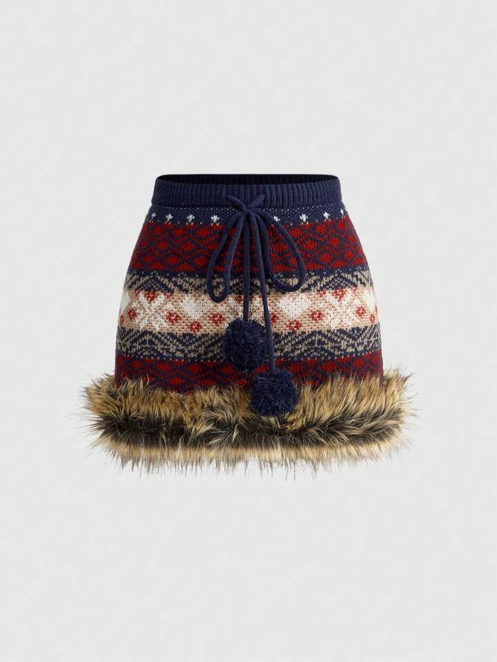 ROMWE Avant Y2K Herbst/Winter Schnee Outfit Fair Isle Jacquard Taillentiefer Damen Pullover & Rock Set