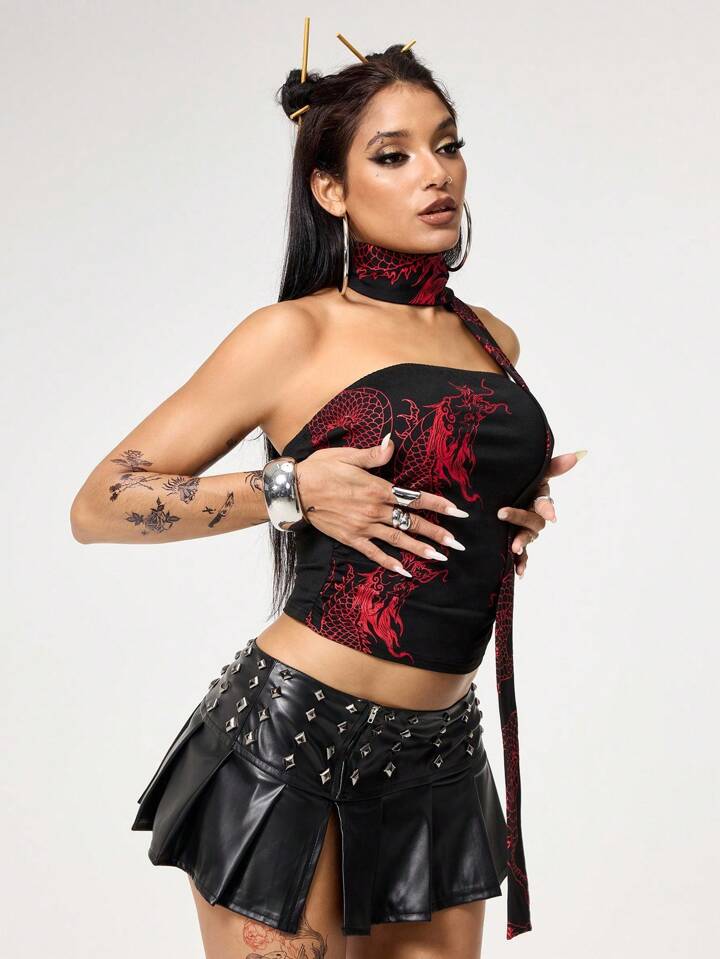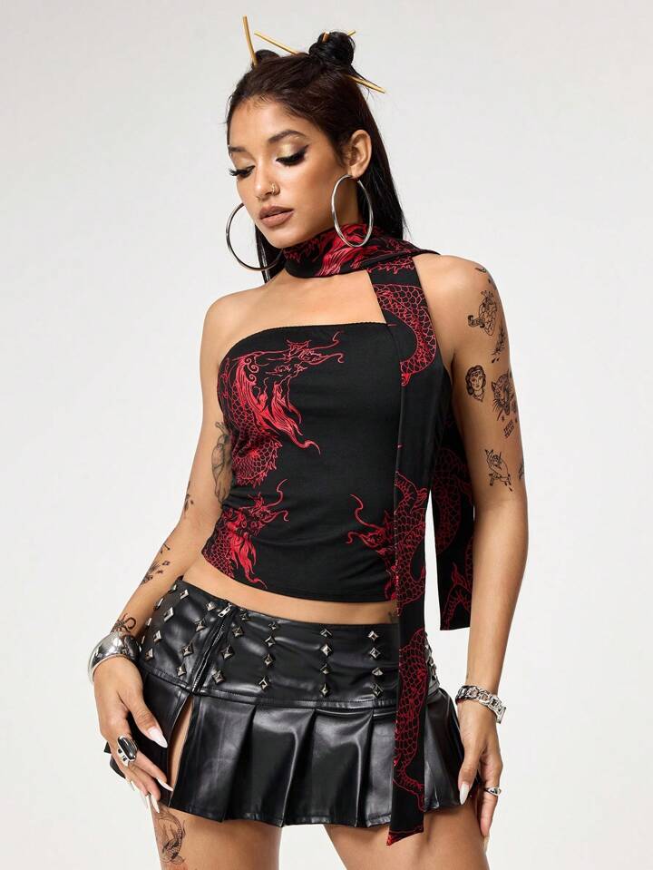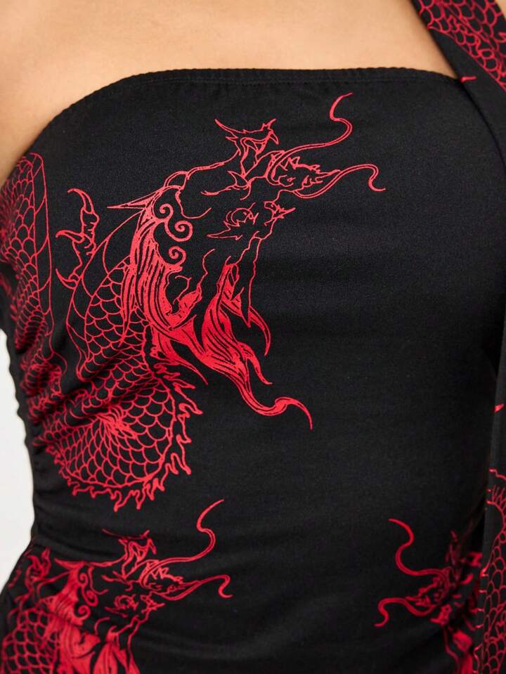 ROMWE Avant Y2K Kurztop mit Drachen Muster für Frauen, eng anliegend