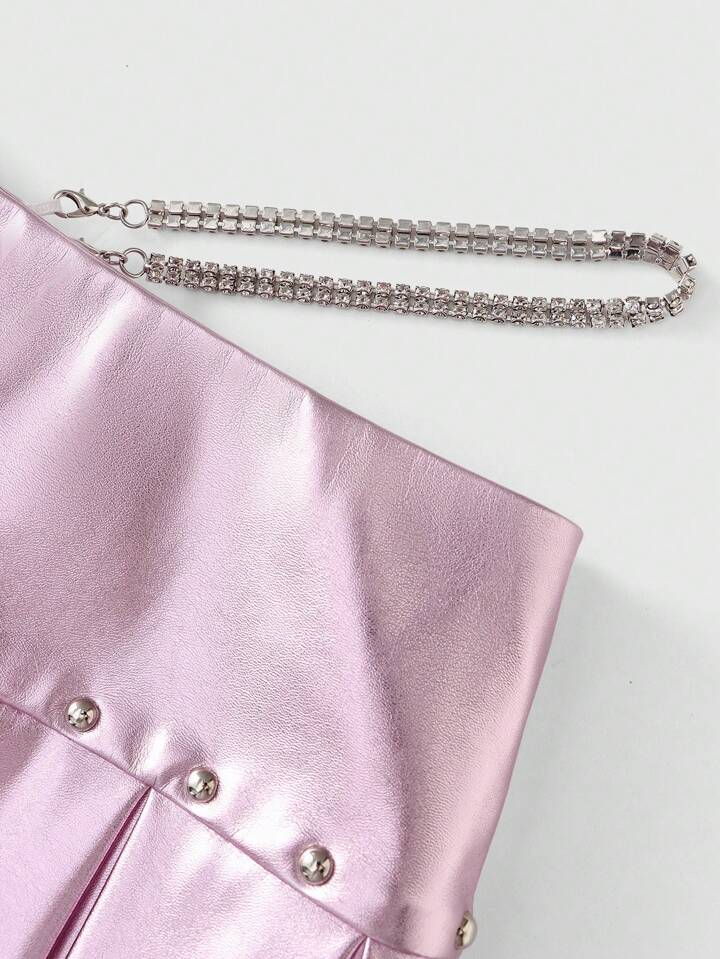 ROMWE Avant Y2K Minirock mit Falten, Strass-Englisch-Text-Muster und Rückenöffnung