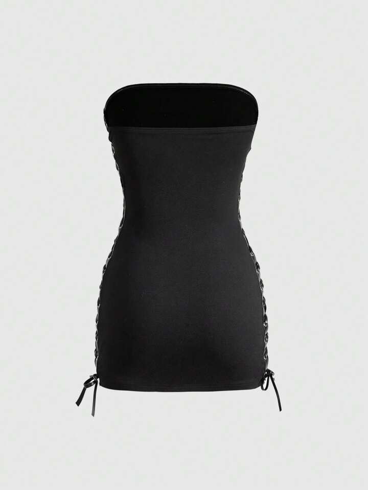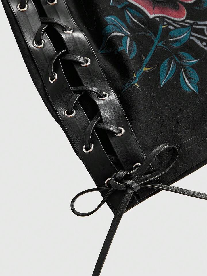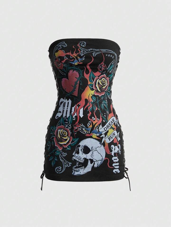 ROMWE Avant Y2K Retro Babe Skelett Herz Flamme Text Muster Kurzes Bodycon Minikleid