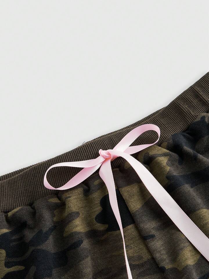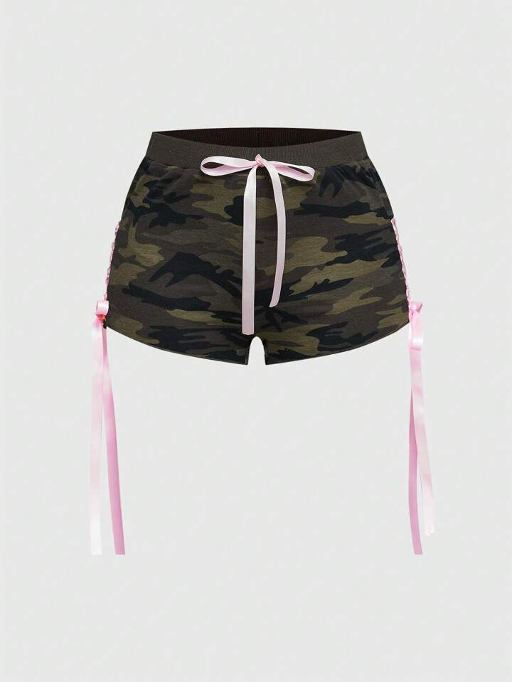 ROMWE Avant Y2K Stil Camouflage Muster, Stickerei mit englischen Buchstaben, tief geschnittene Damen Shorts