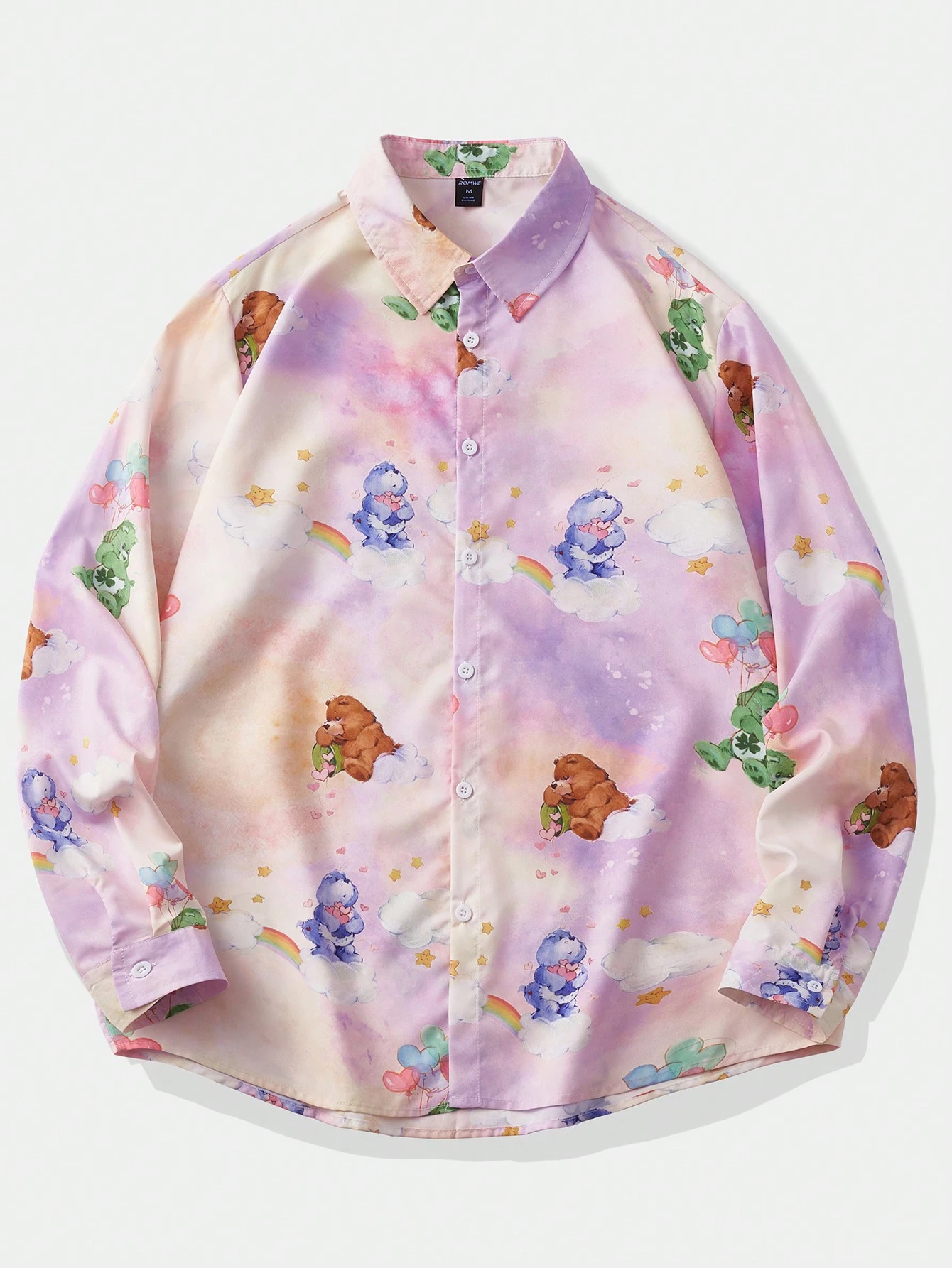 ROMWE X Care Bears Langarmshirt Für Herren Mit Cartoon Bären Und Tie-dye Druck