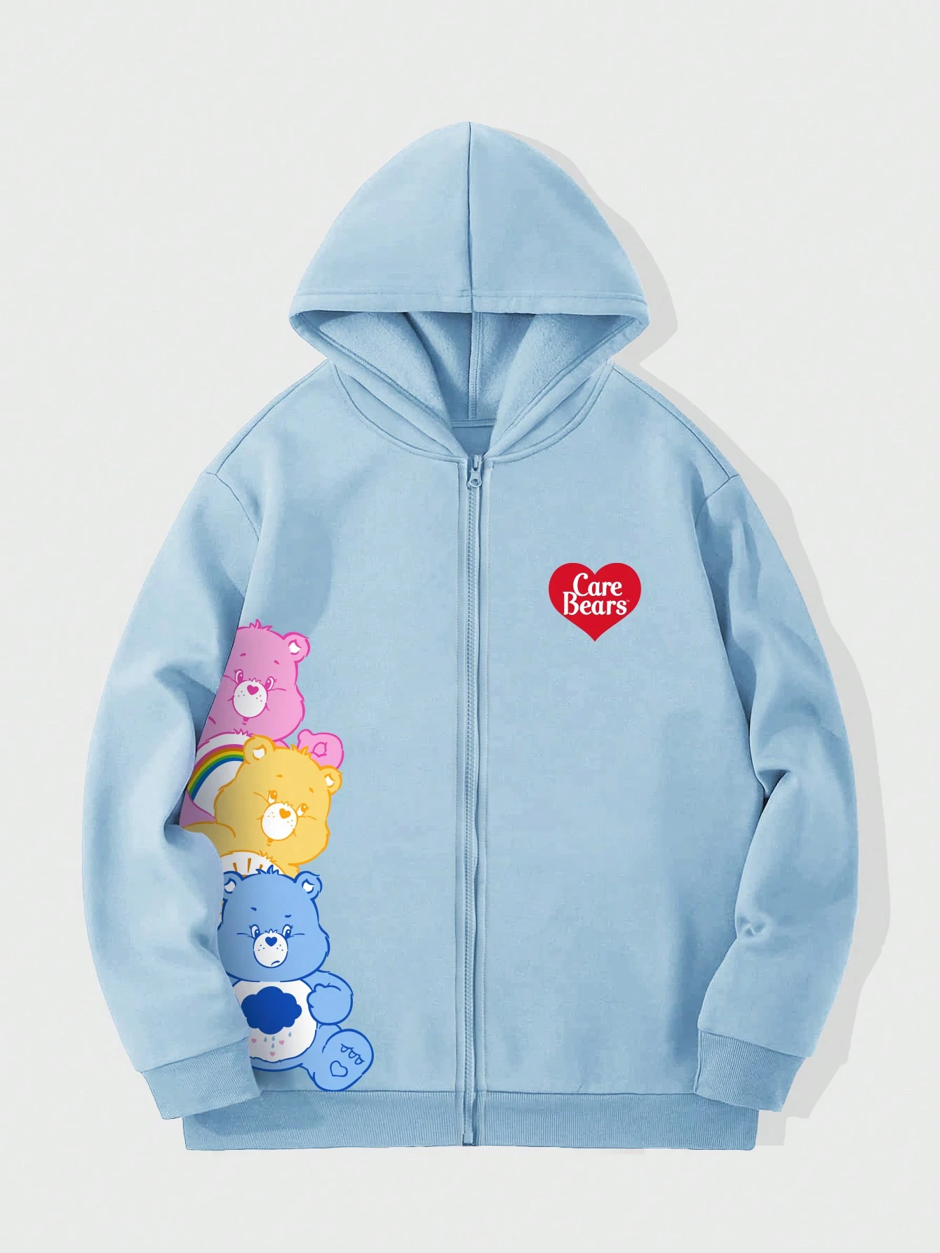 ROMWE X Care Bears Herren Kapuzen-sweatshirt Mit Reißverschluss Und Cartoon-druck