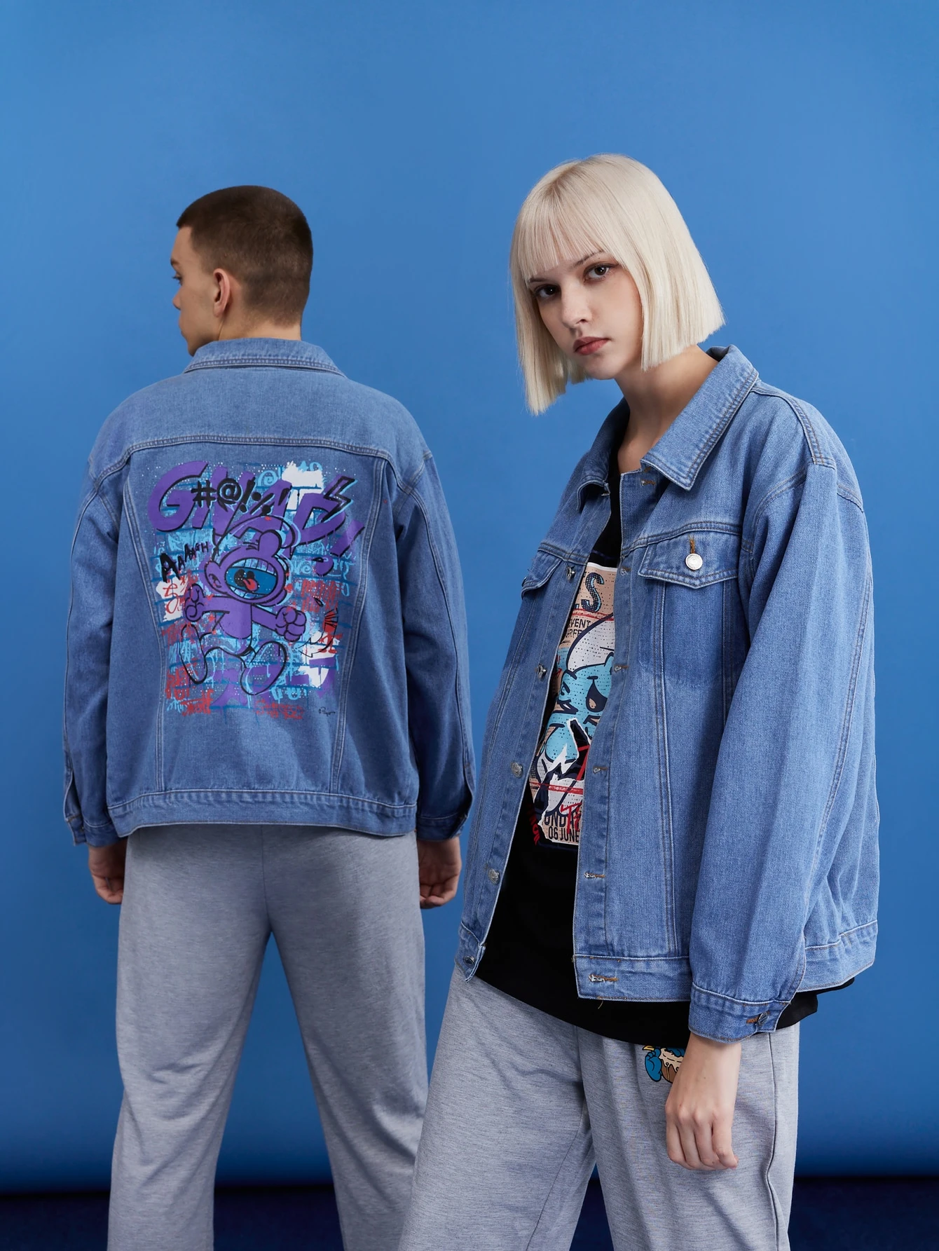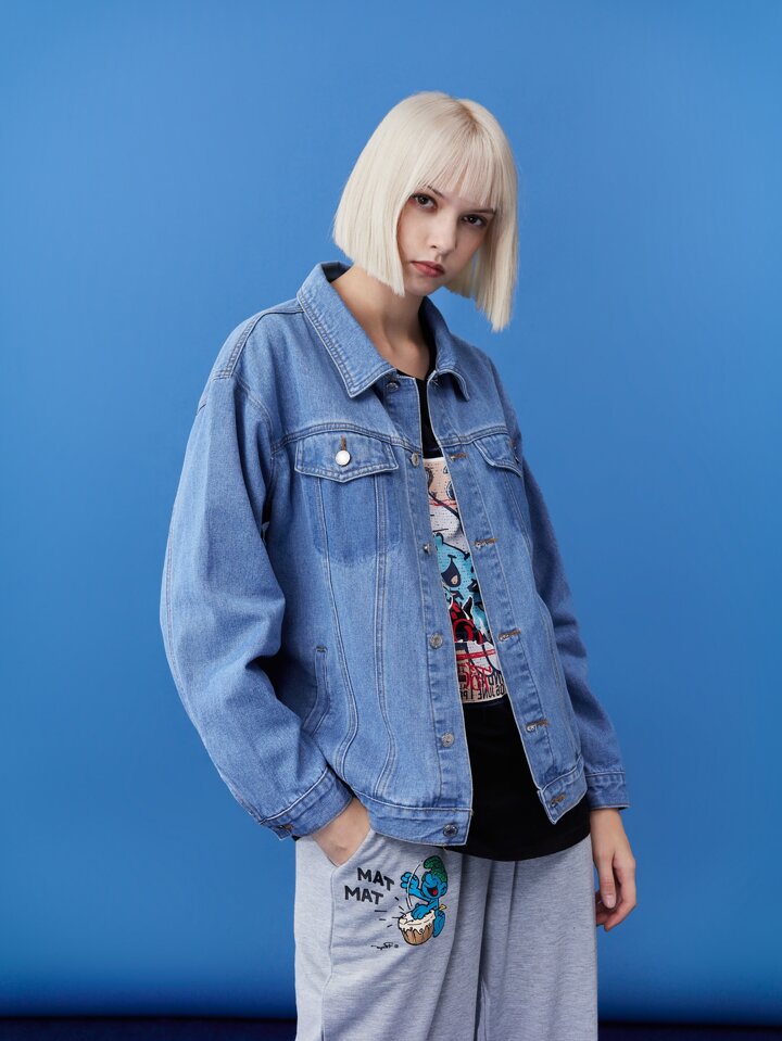 ROMWE X The Smurfs Unisex 1 Stück Jeansjacke mit Cartoon Muster