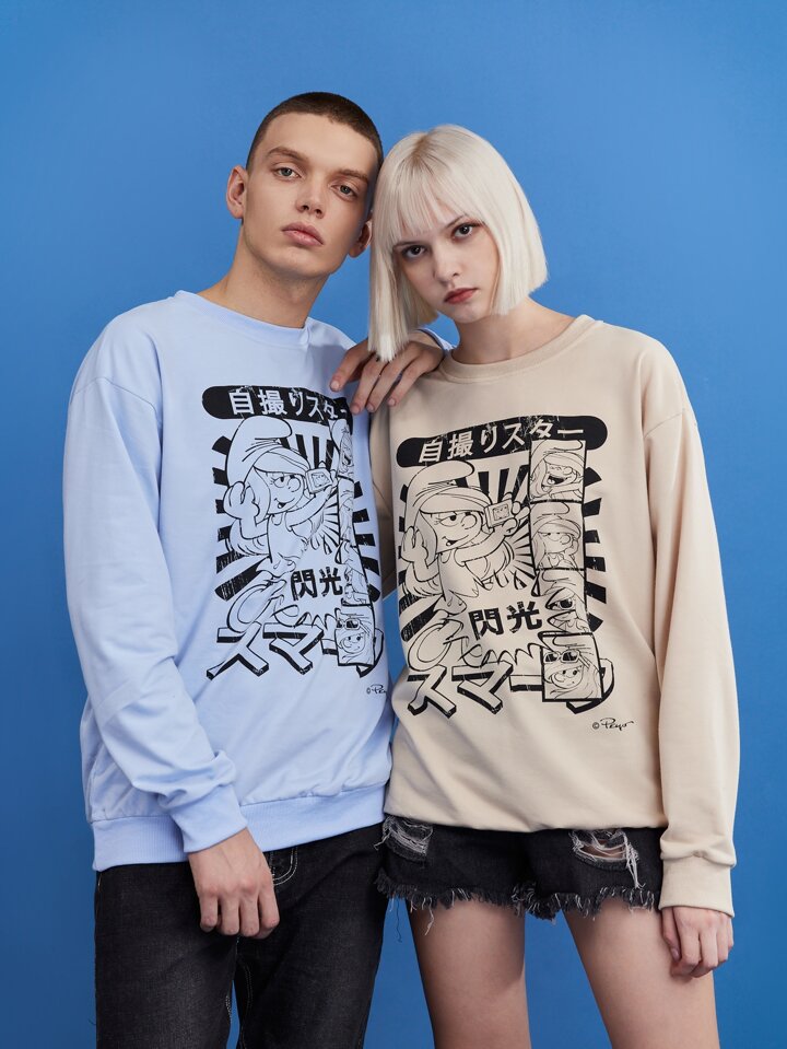 ROMWE X The Smurfs Unisex 1 Stück Sweatshirt mit Cartoon Muster