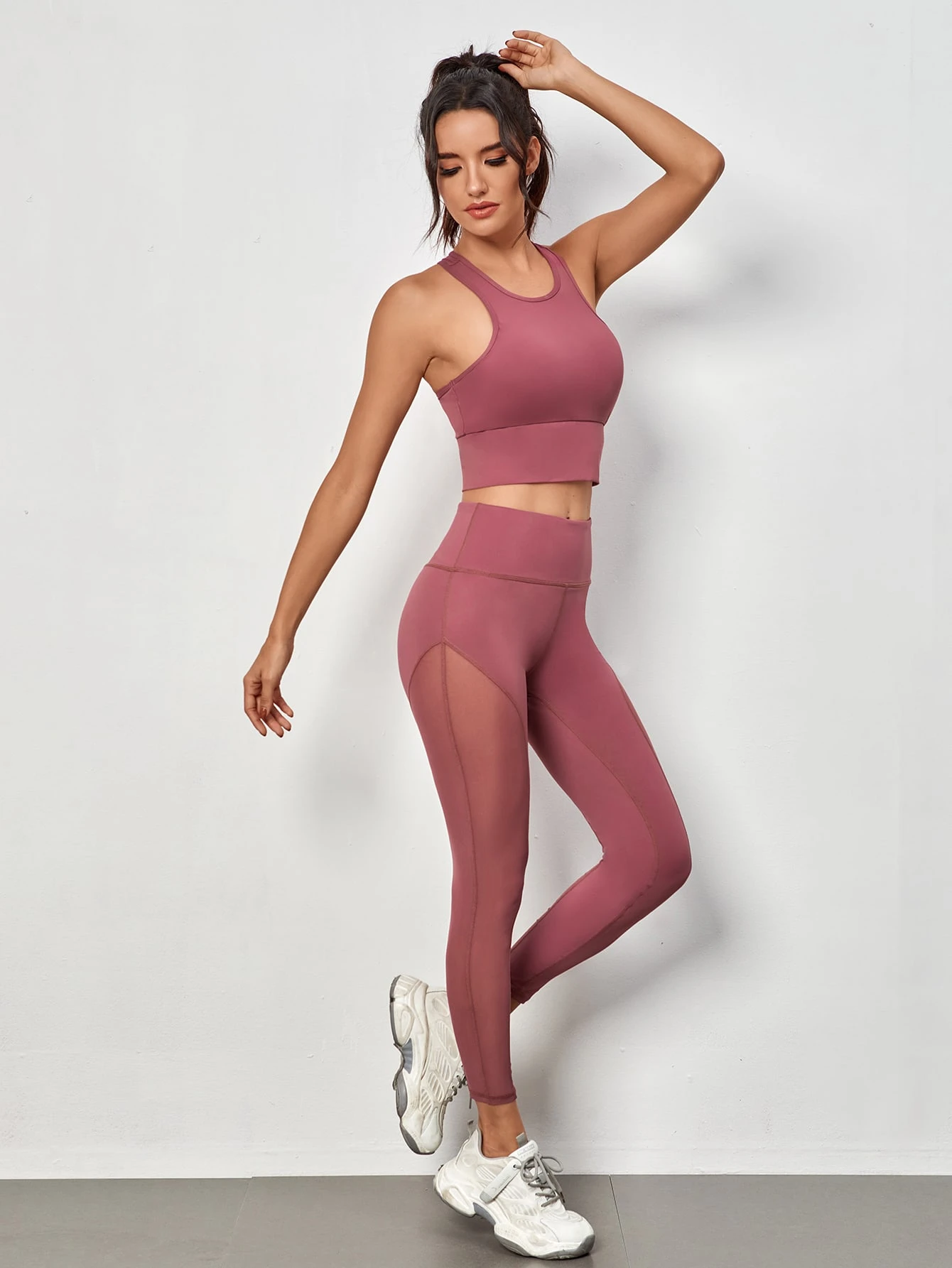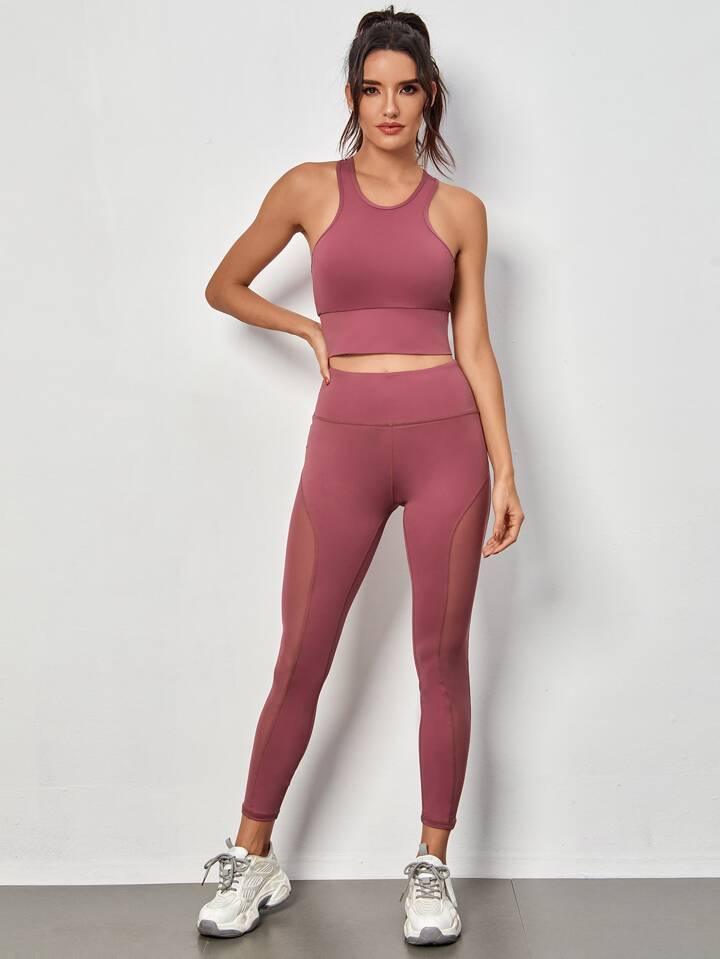 Sports BH mit Racer Back & Leggings mit Kontrast-Mesh