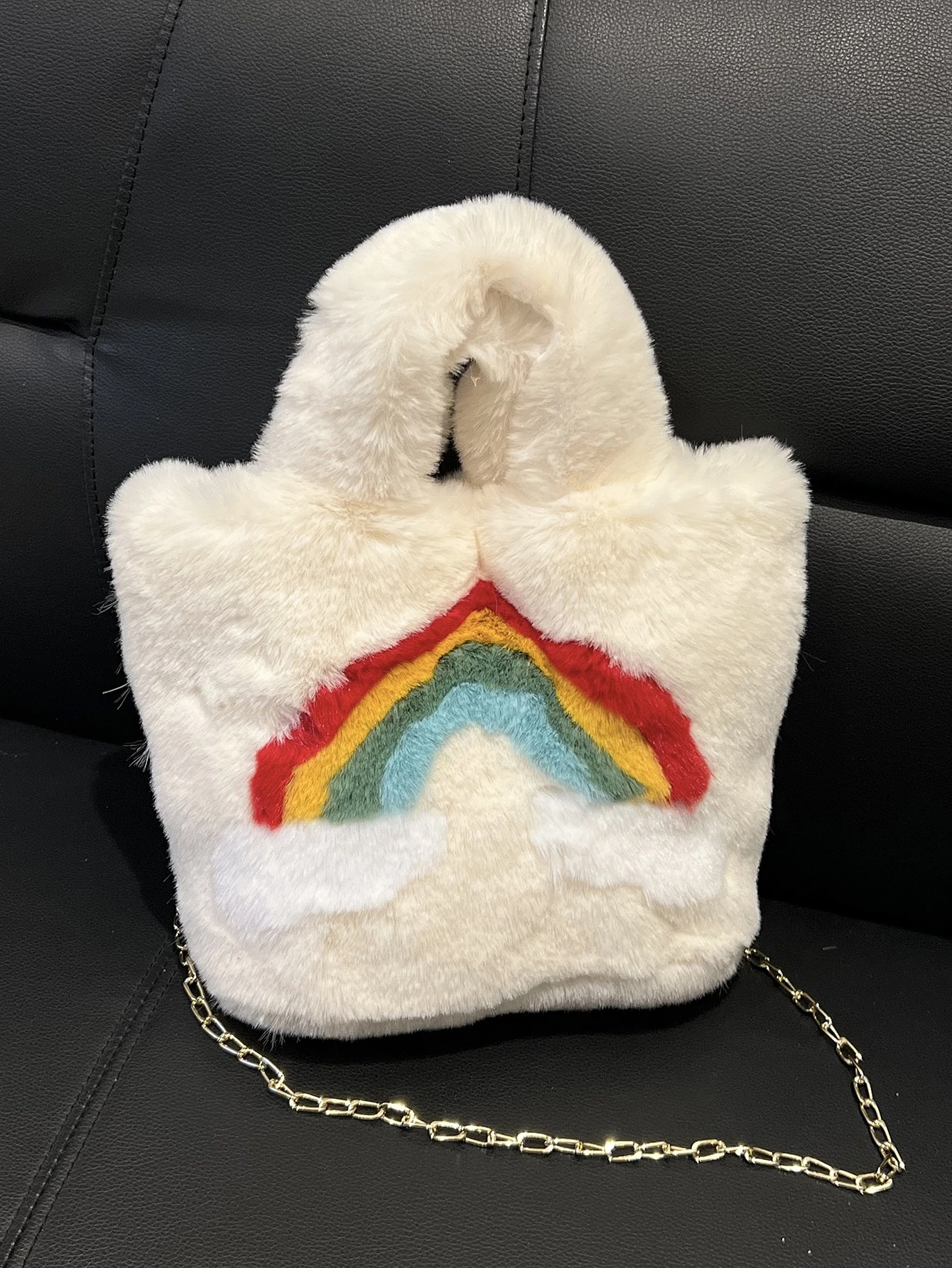 Quadratische Tasche mit Regenbogen Muster, Flauschig