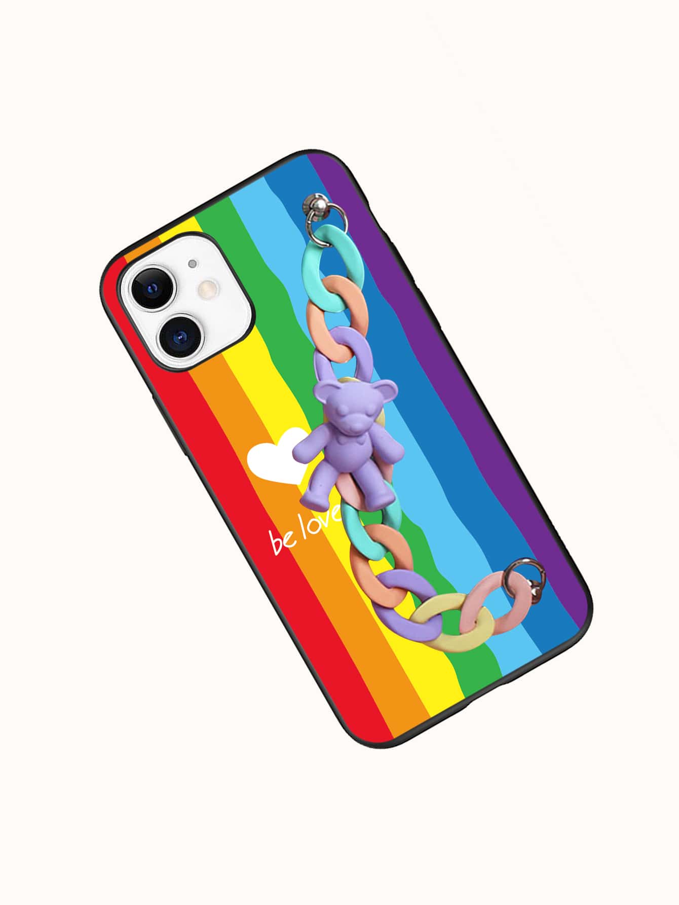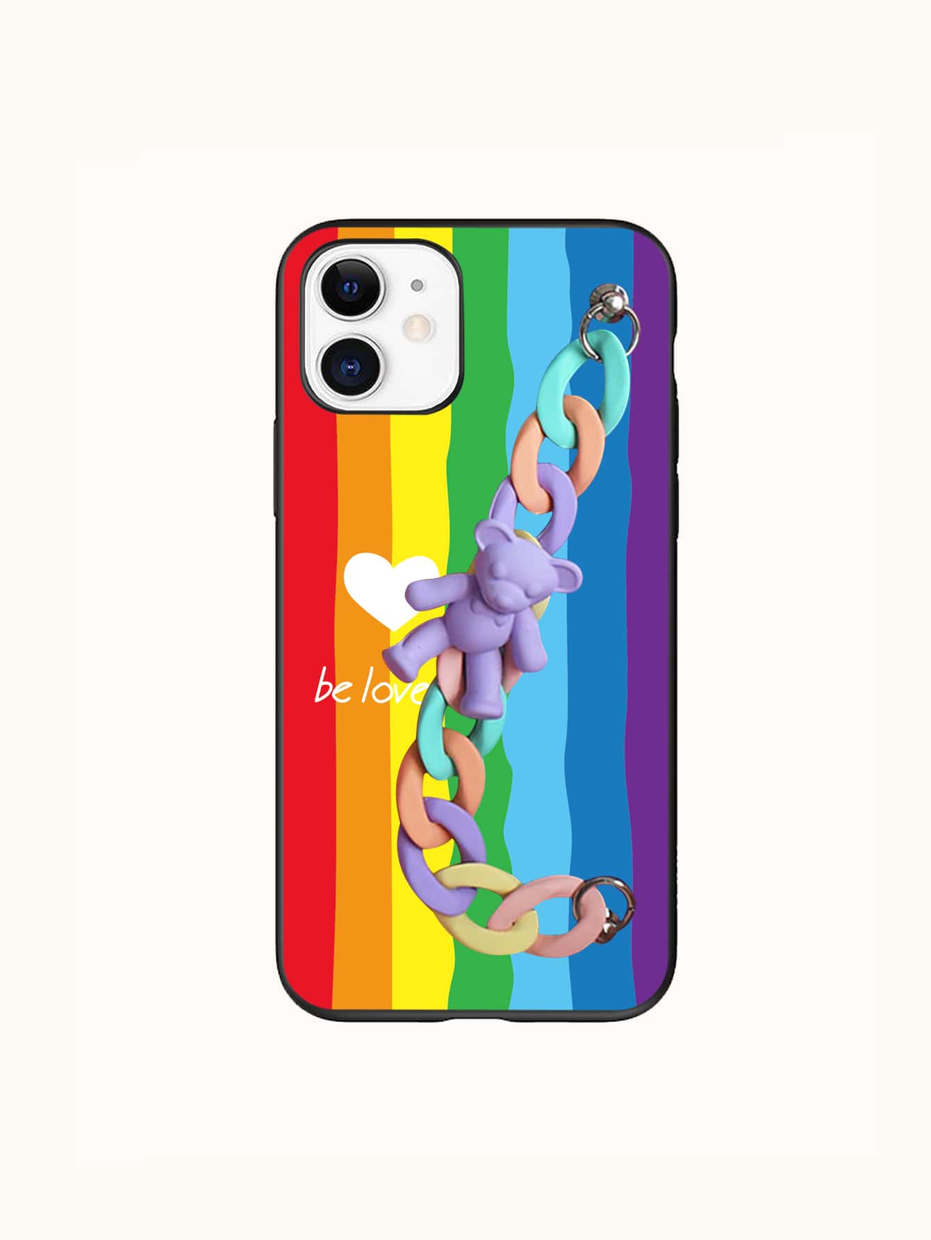 Handyhülle mit Regenbogen Muster & Bären Anhänger und Kette