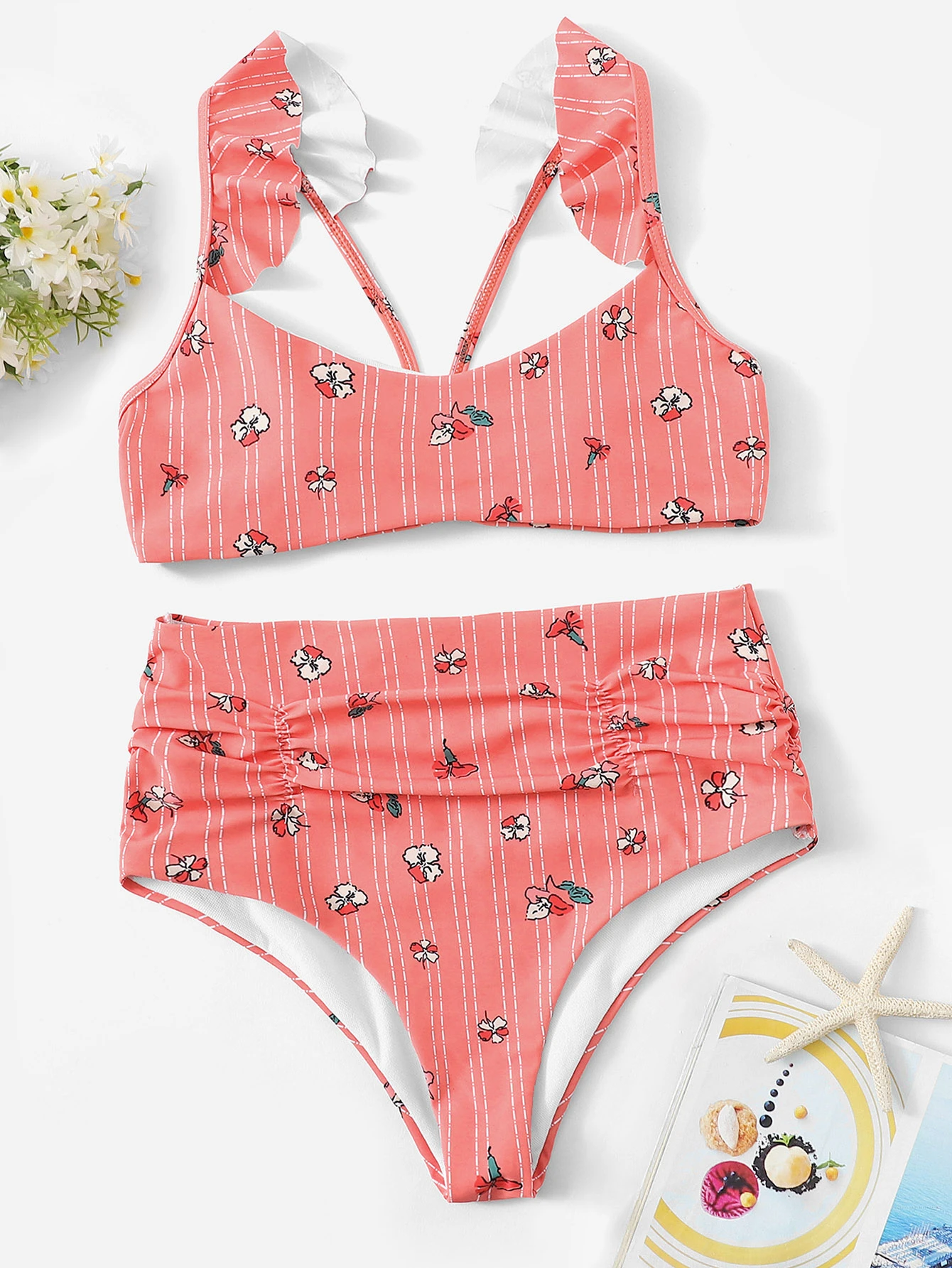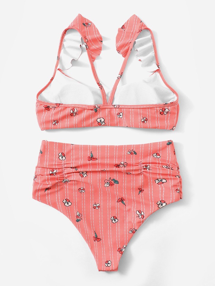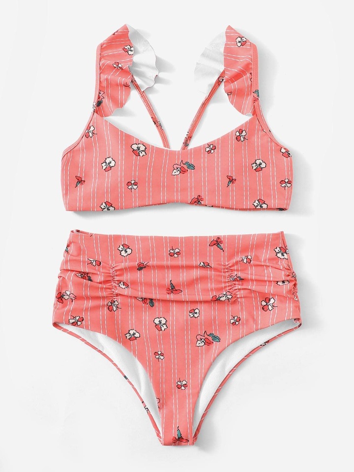 Top mit Raffung und Bikini mit hoher Taille