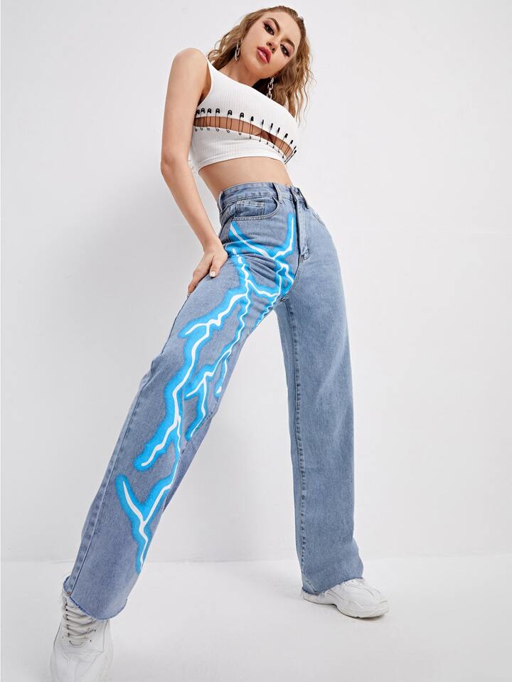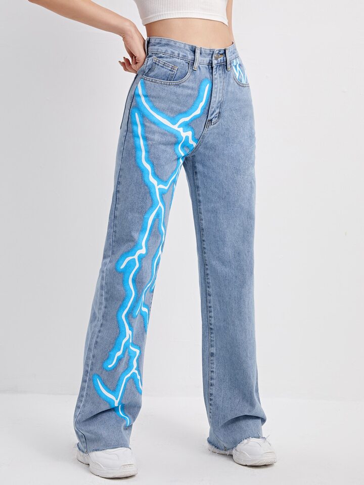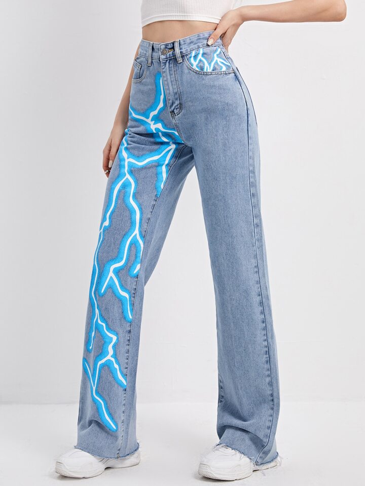 Jeans mit umgesäumtem Saum und Blitz Muster