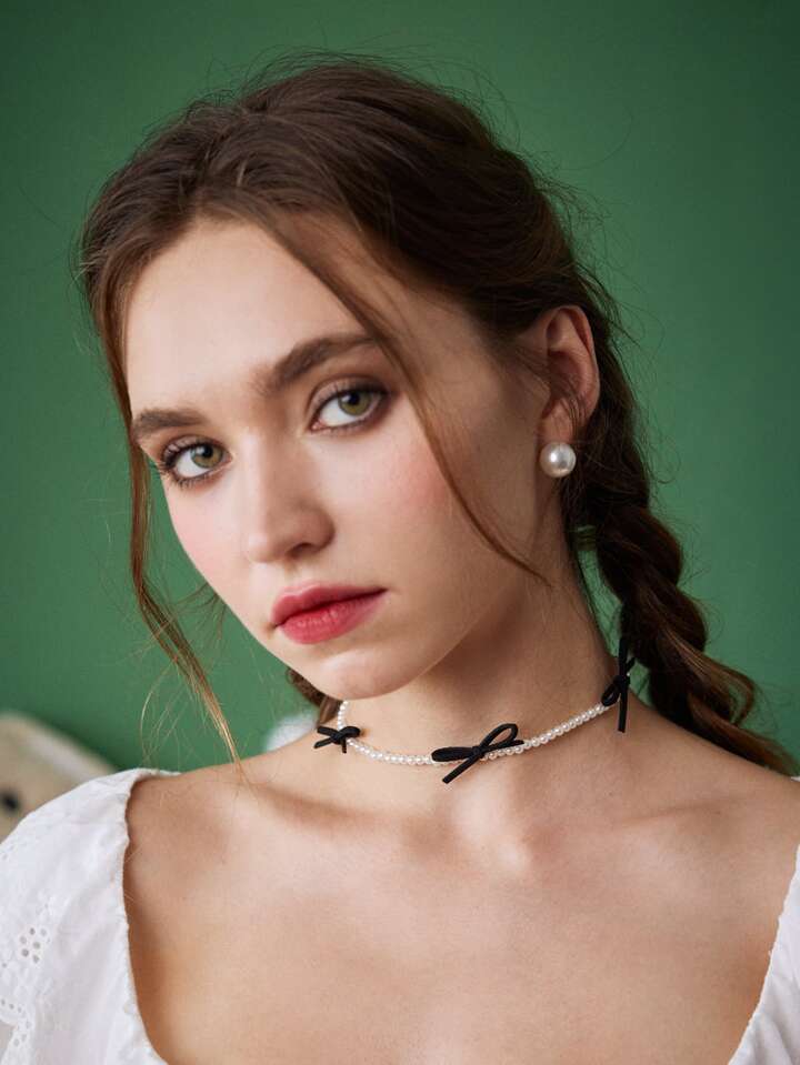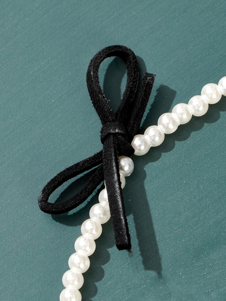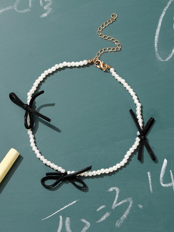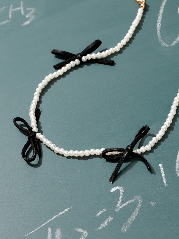 Retro Schleife Dekor Kunstperlen Halskette Mit Perlen