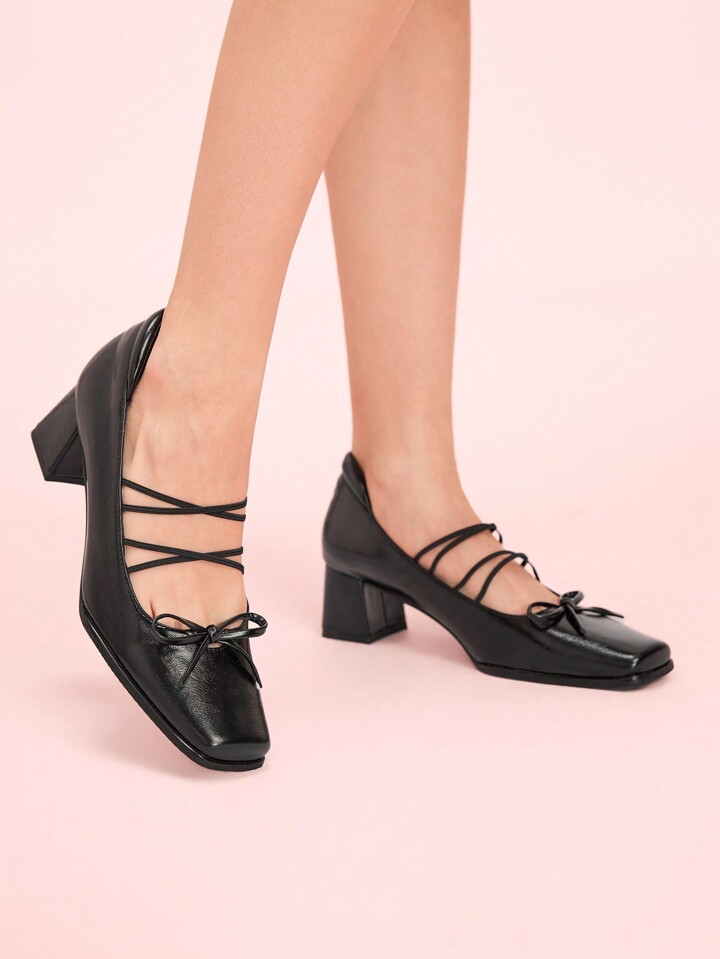 Retro französische Mary Jane Schuhe für Frauen 2024 Herbst Neu Quadratische Zehenkappe Klobige Absätze Schleife D-Riemen Flache Frühjahrschuhe