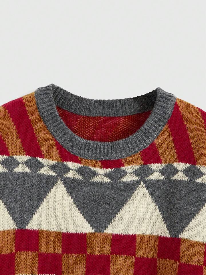 Rückwärts Hippie Stil geometrisches Muster Loose Pullover Damen Pullover