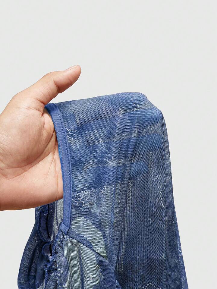 Retro Hippie V-Ausschnitt Schleifenakzent Kontrast Ditsy Blumen Damen T-Shirt, schlank schmeichelhaft und vielseitig