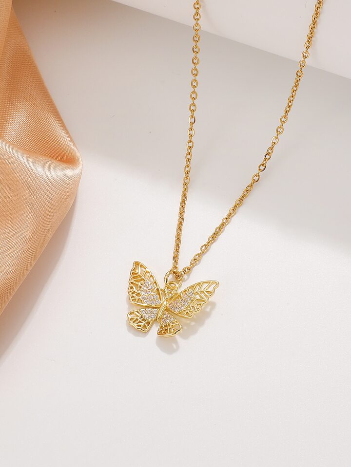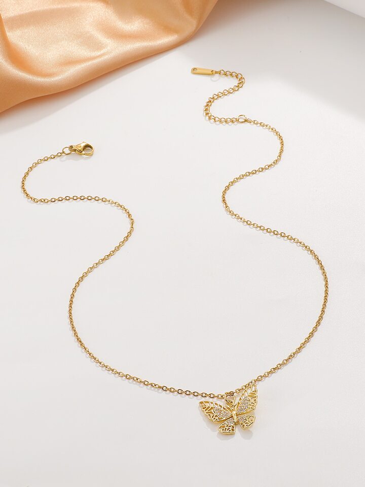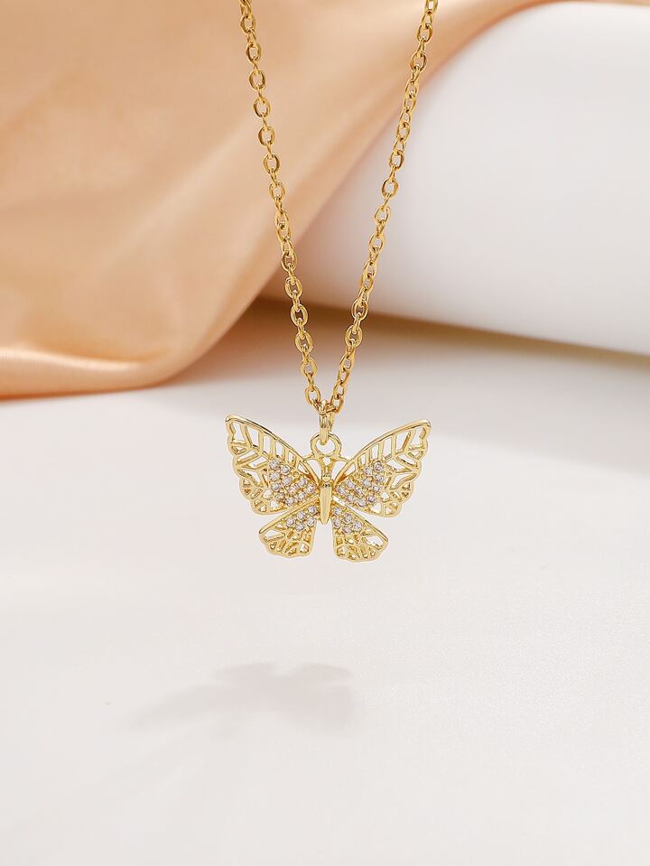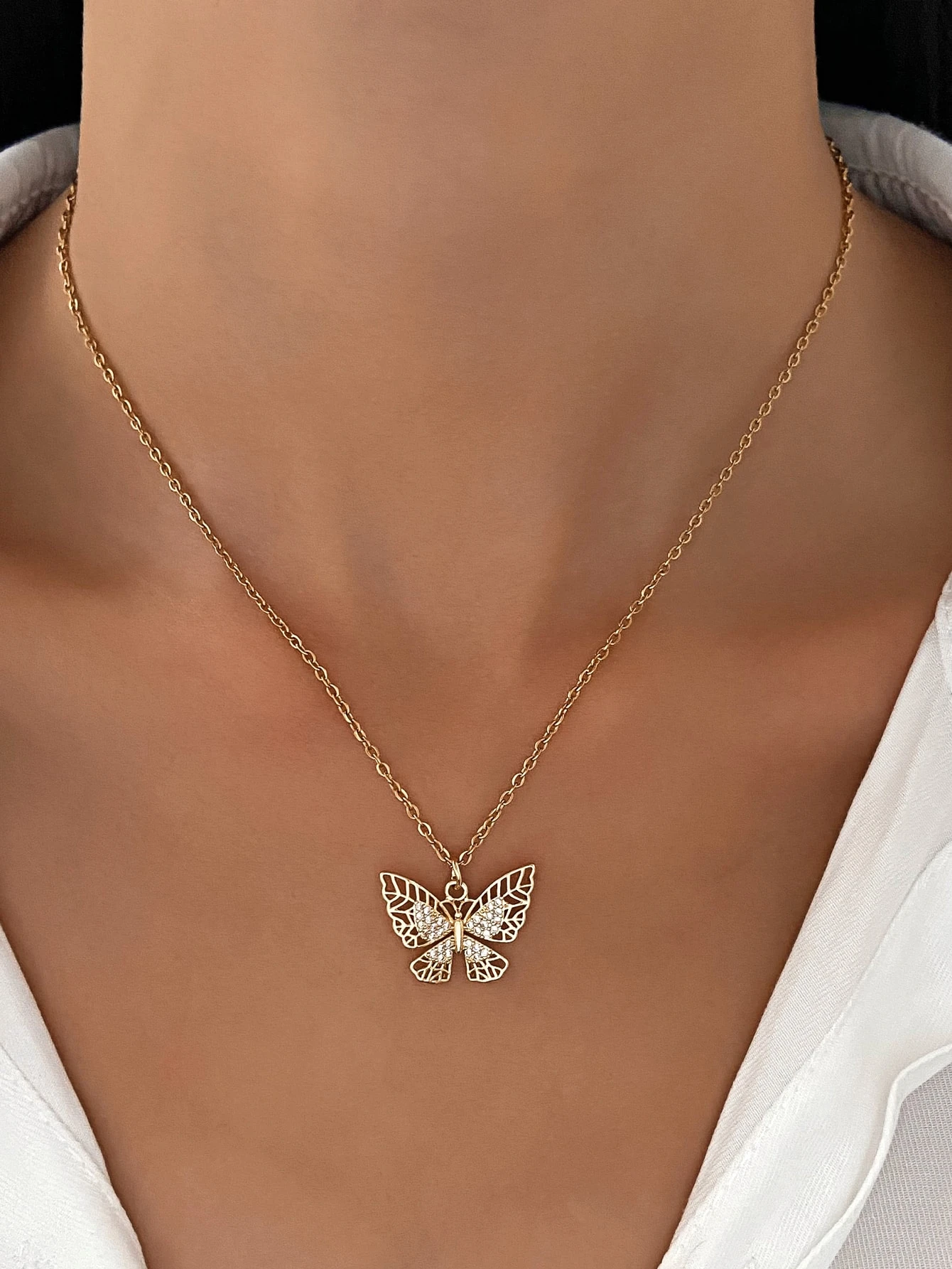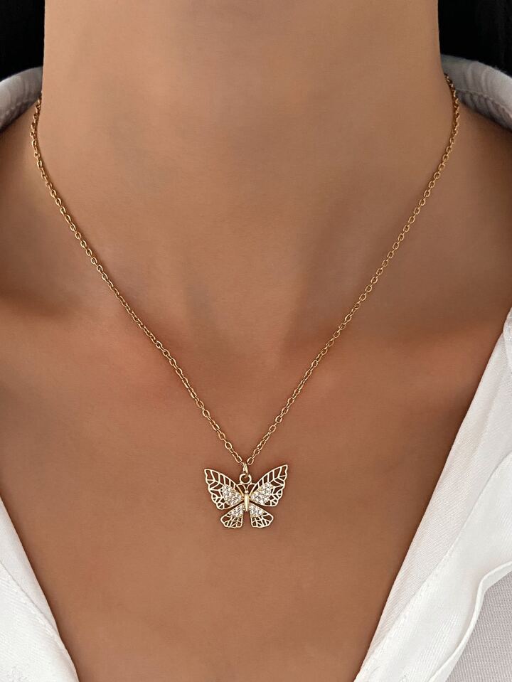 Halskette mit Strass Dekor, Schmetterling Anhänger