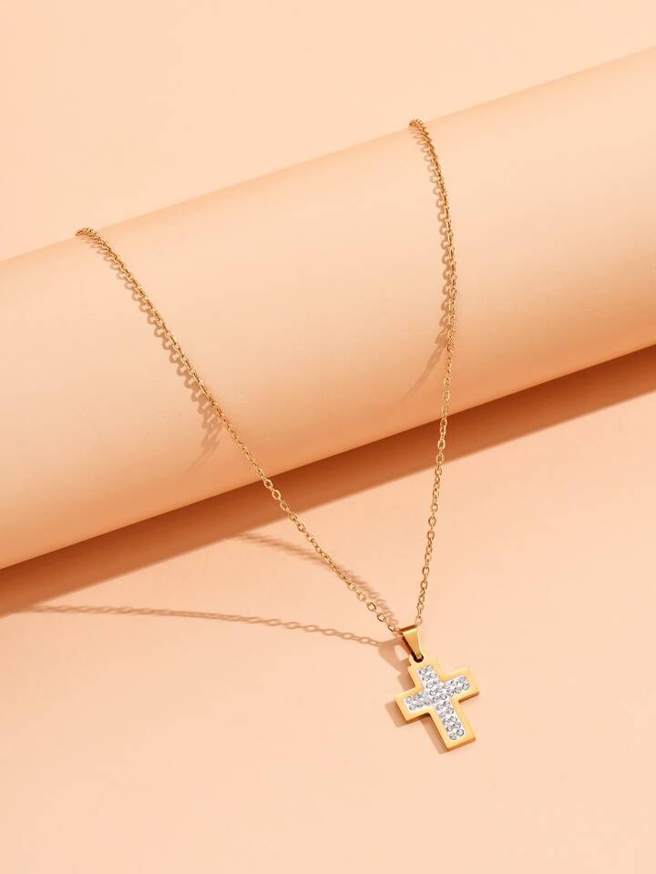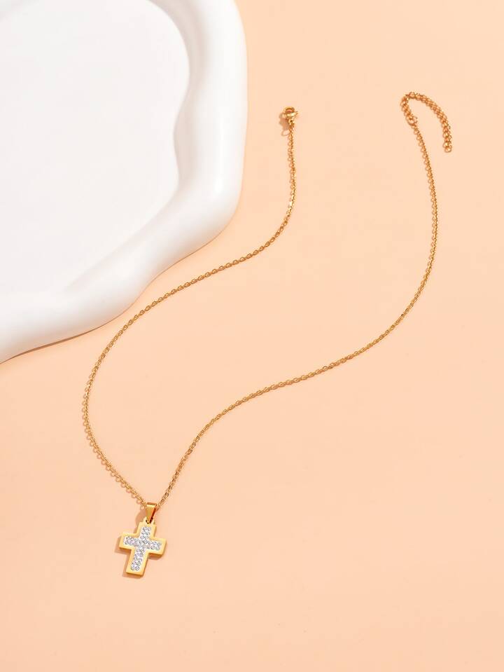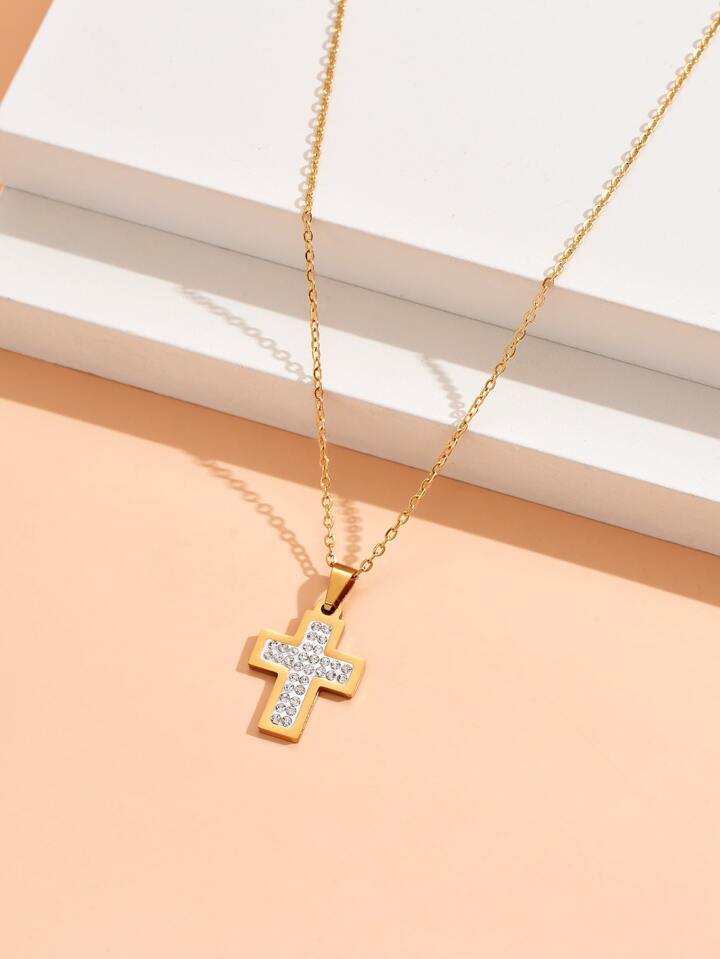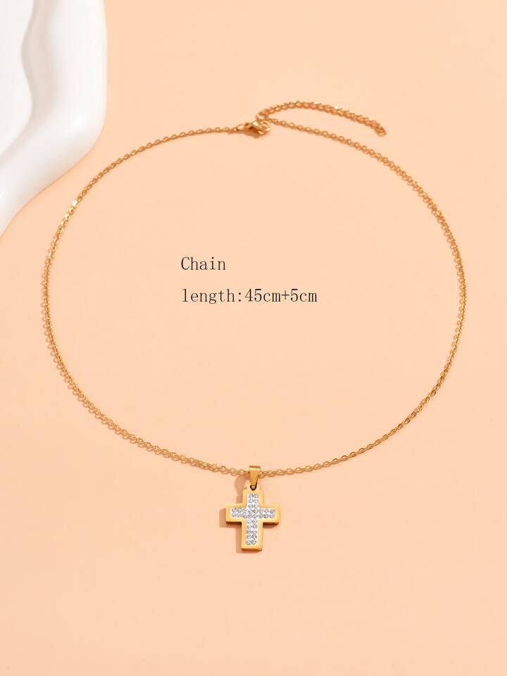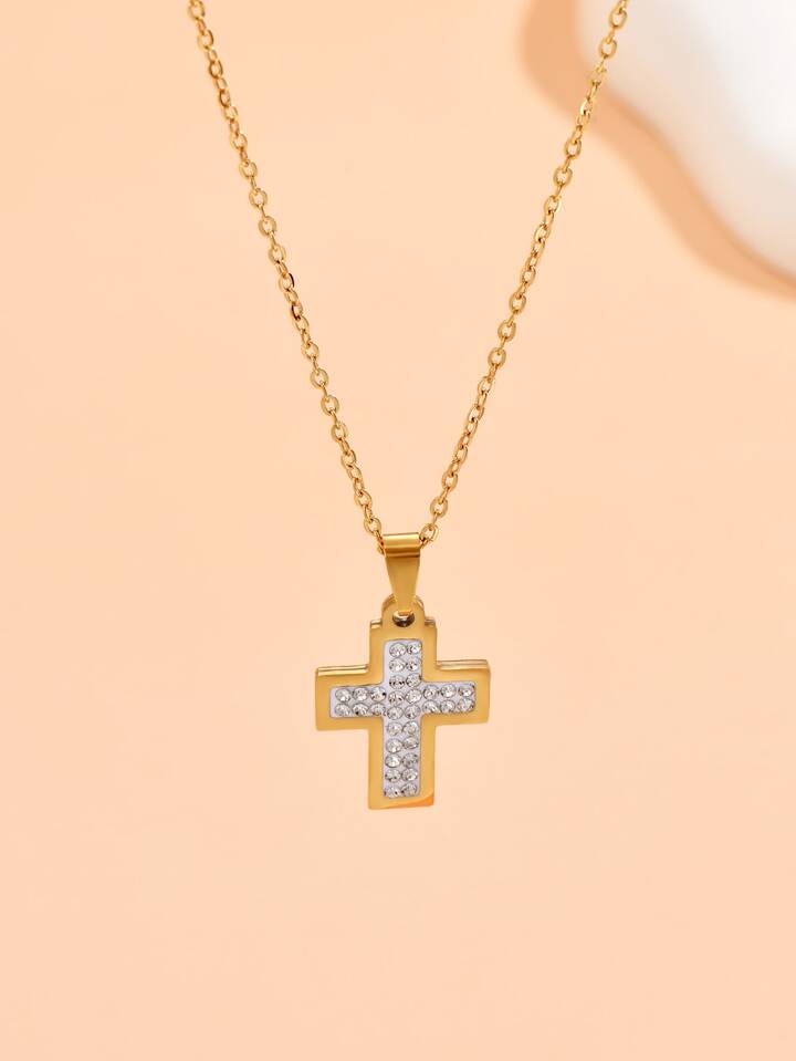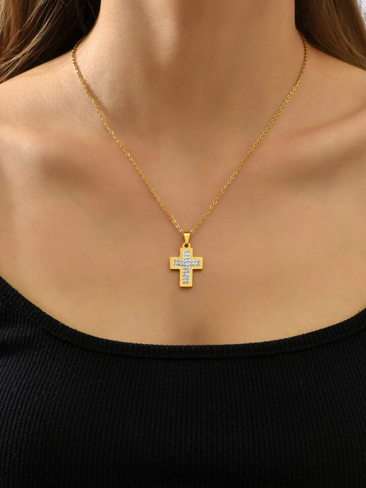 Halskette mit Strass Dekor, Kreuz Anhänger
