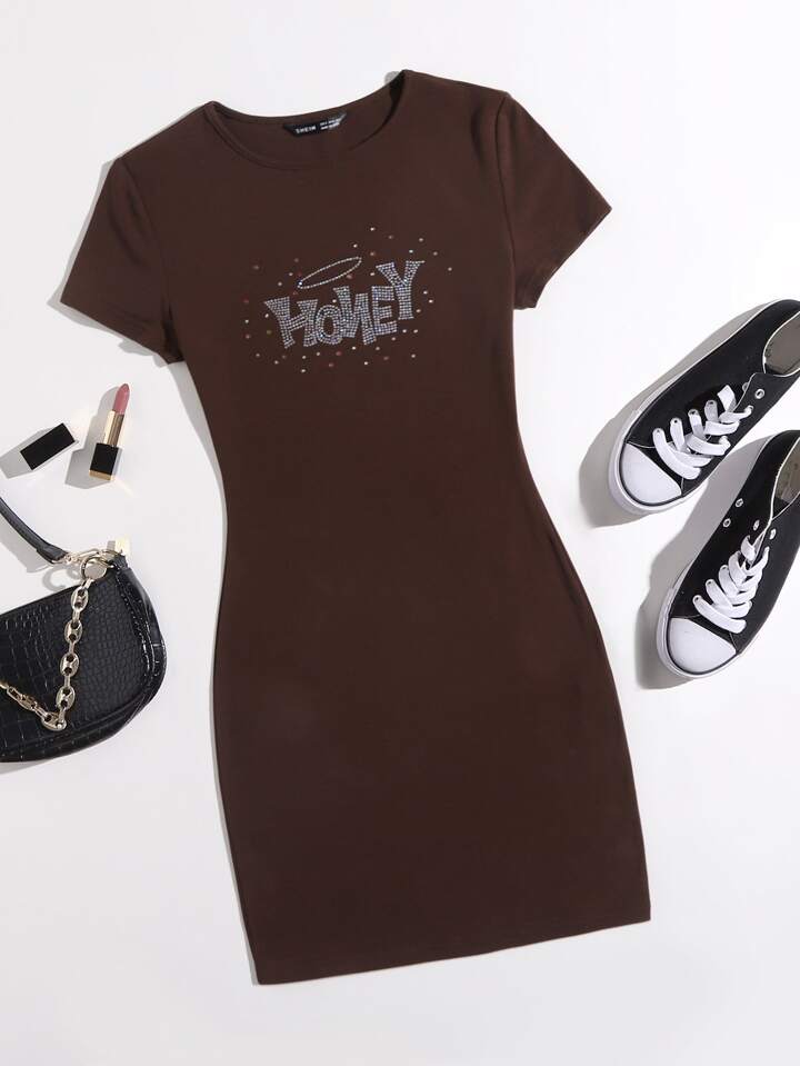 Figurbetontes Kleid mit Strass Buchstaben
