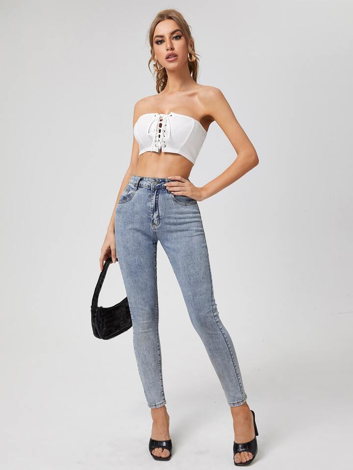 Geripptes Top zum Schnüren vorne