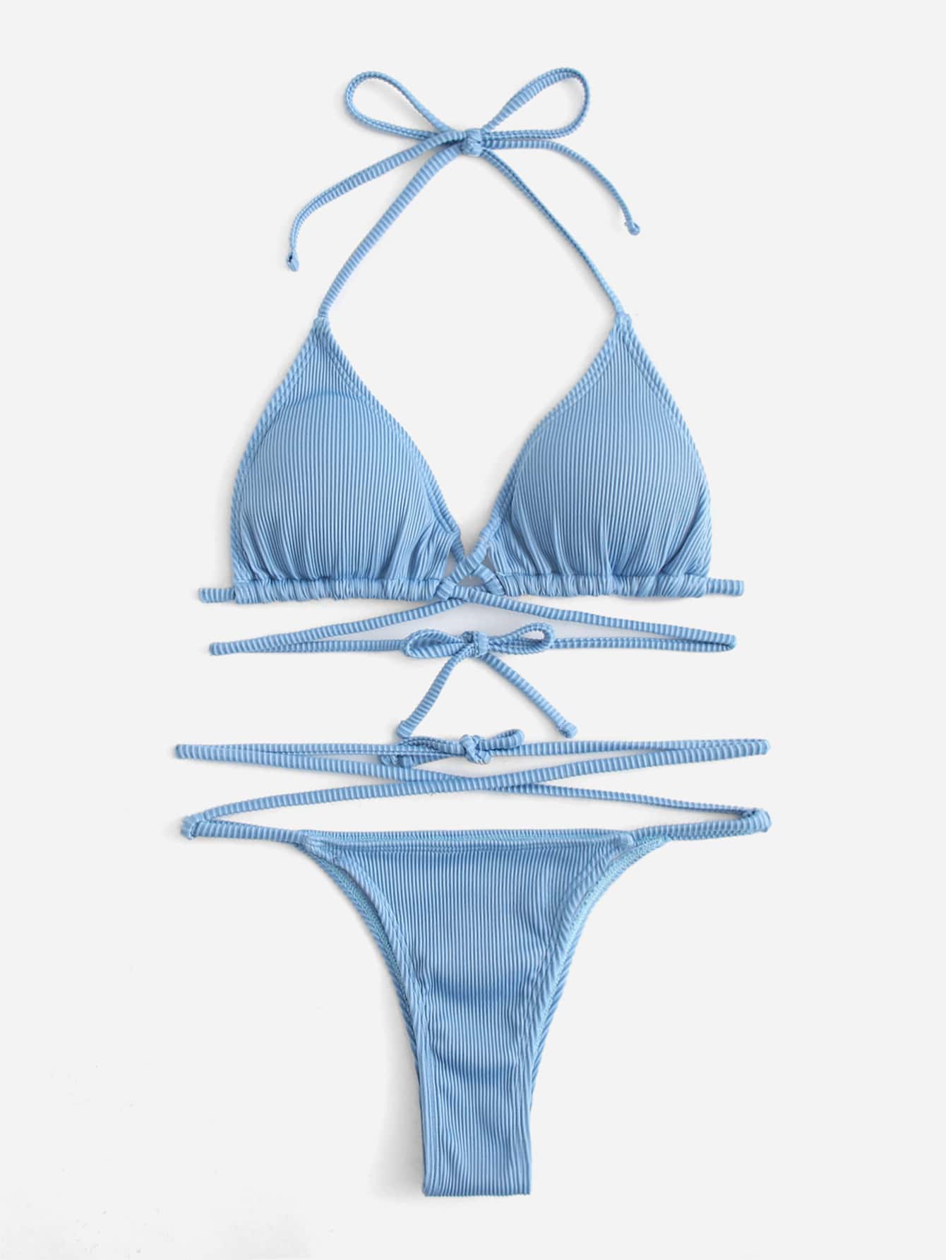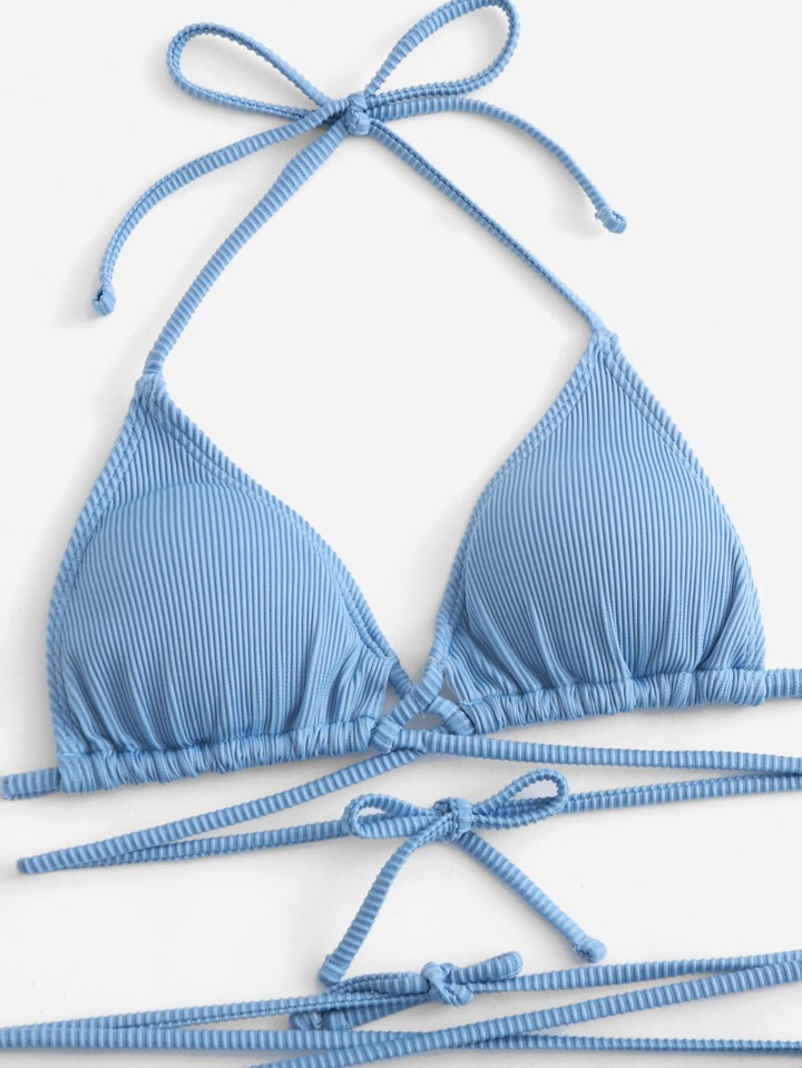 Gerippter Triangel-Bikini mit überkreuztem Design
