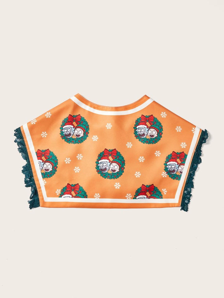 Rick and Morty | ROMWE Abnehmbarer Dickey-Kragen mit Weihnachten Cartoon Muster