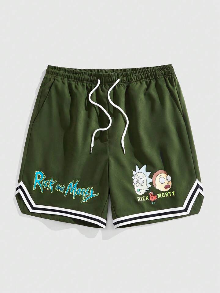 Rick and Morty | ROMWE Shorts mit Buchstaben- und Zahlengrafik, Tunnelzug Taille, Taschen, Lässig
