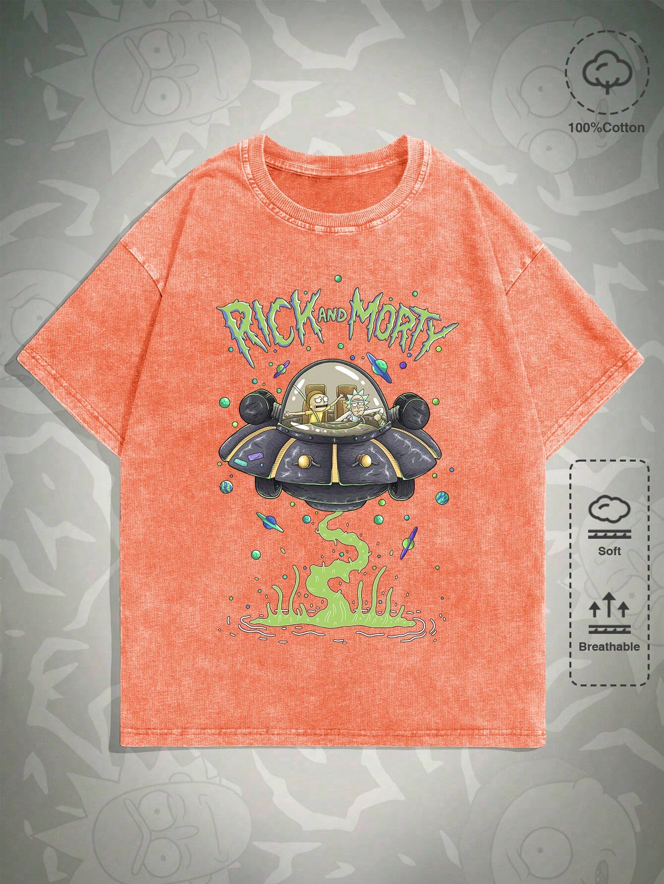 Rick and Morty | ROMWE Herren Lässig T-Shirt mit Cartoon Raumschiff Muster, Kurzarm, Sommer