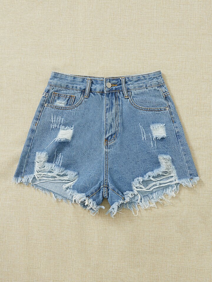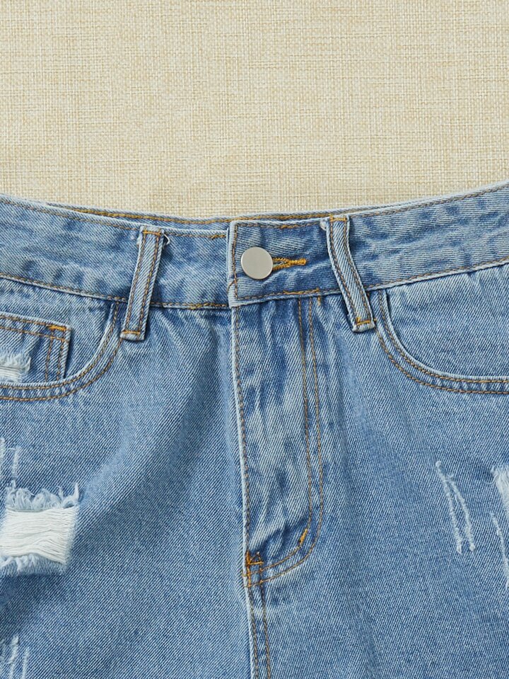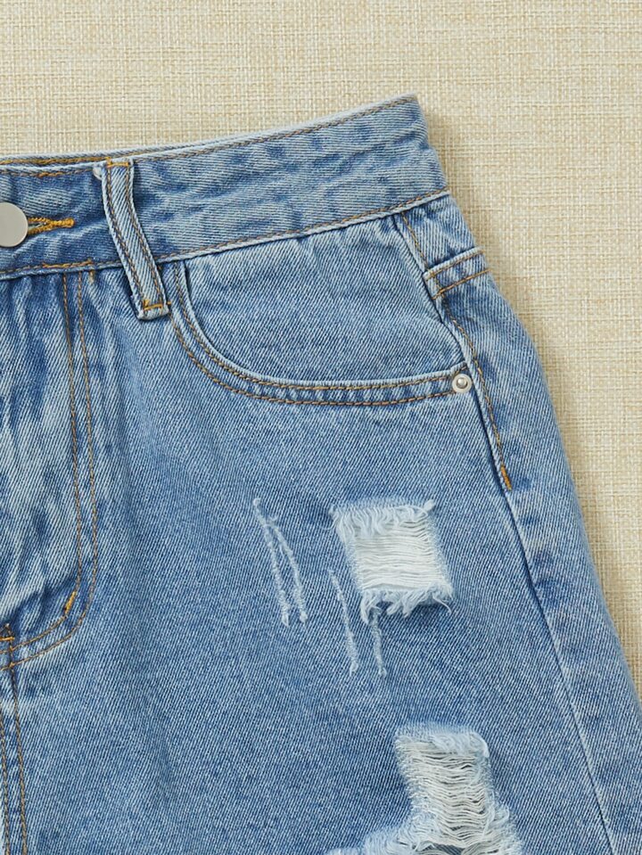 Denim Shorts mit Riss, unbearbeitetem Saum