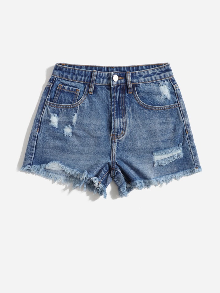 Denim Shorts mit Riss, unbearbeitetem Saum