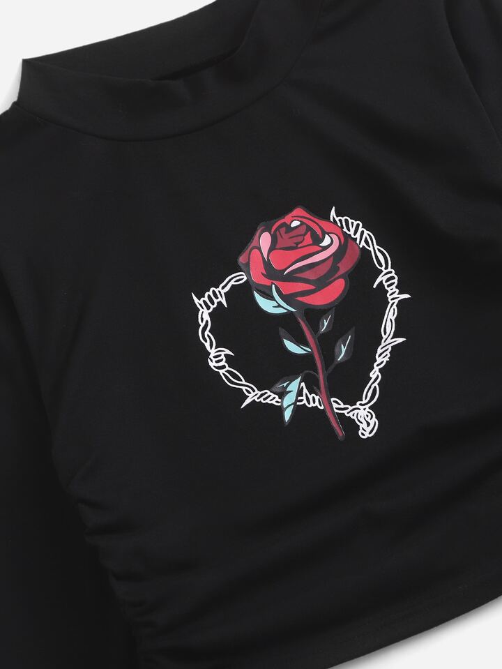 T-Shirt mit Rose und Herzen Muster, Tunnelzug