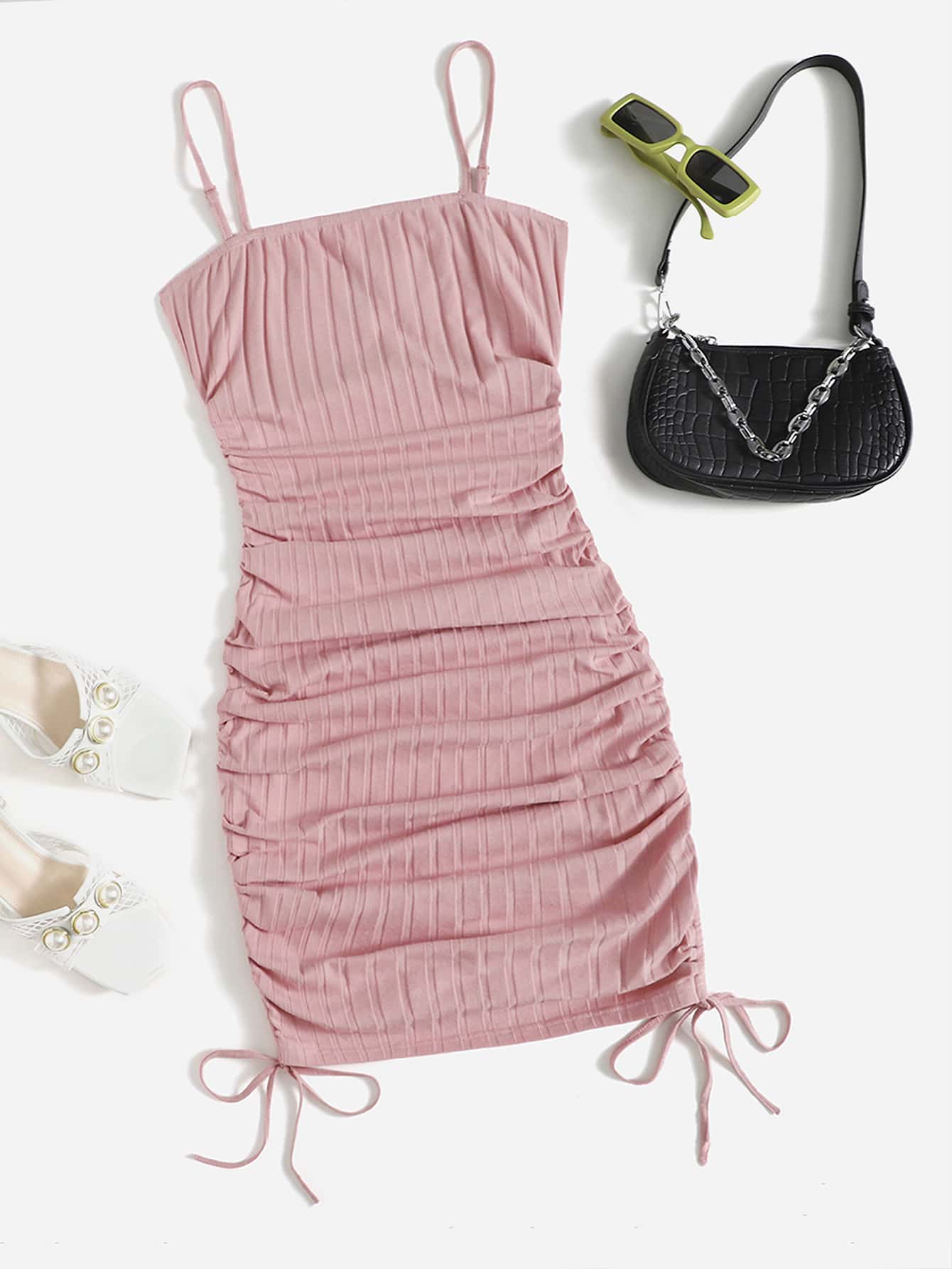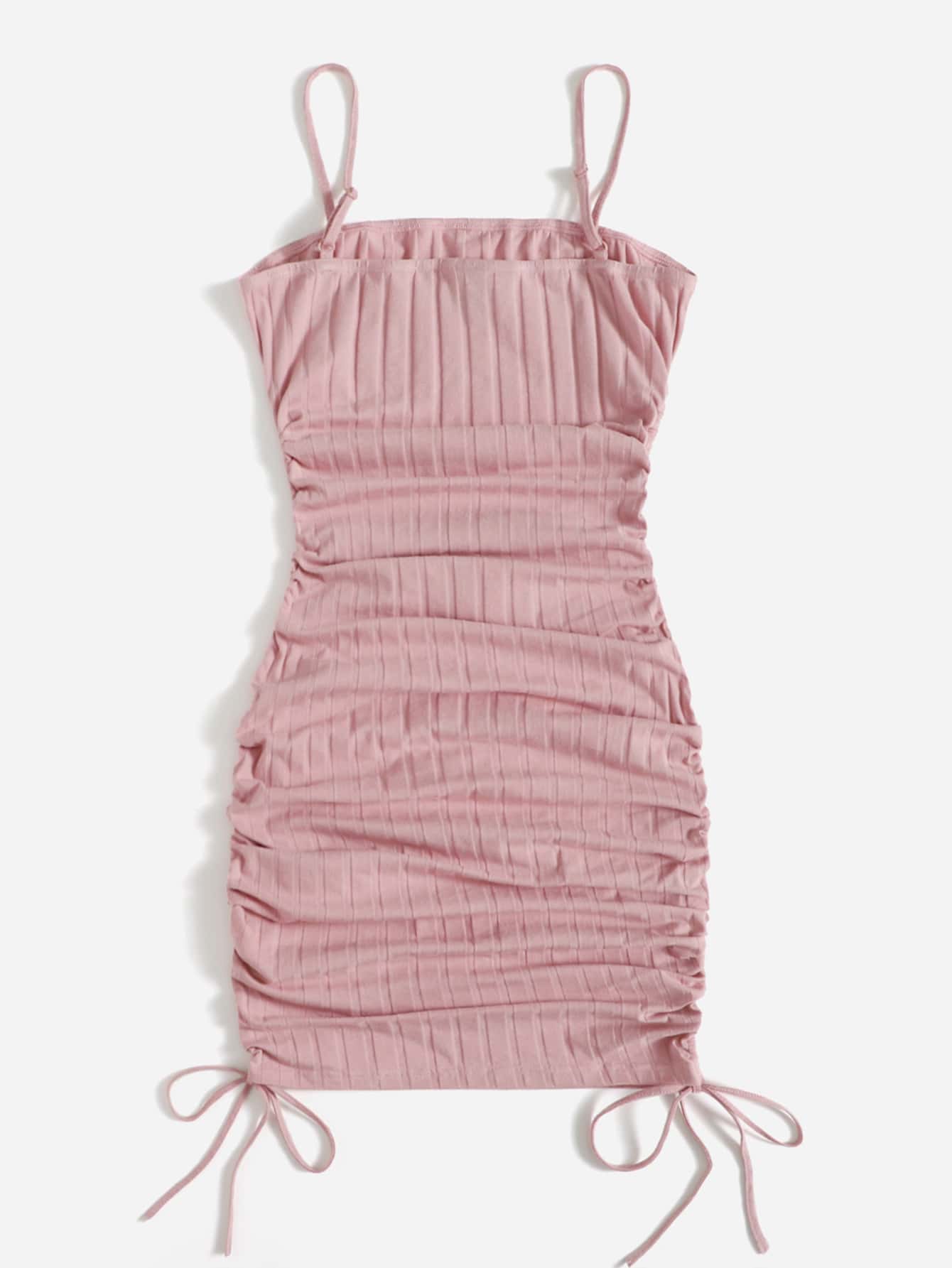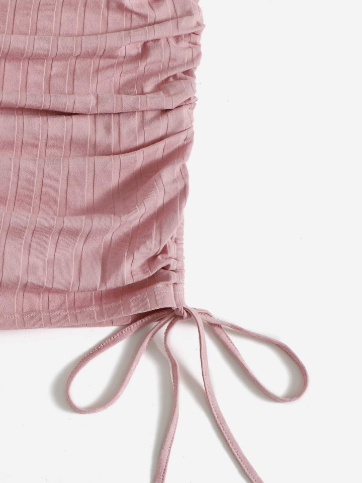 Rippenstrick figurbetontes Kleid mit Rüschen und Kordelzug