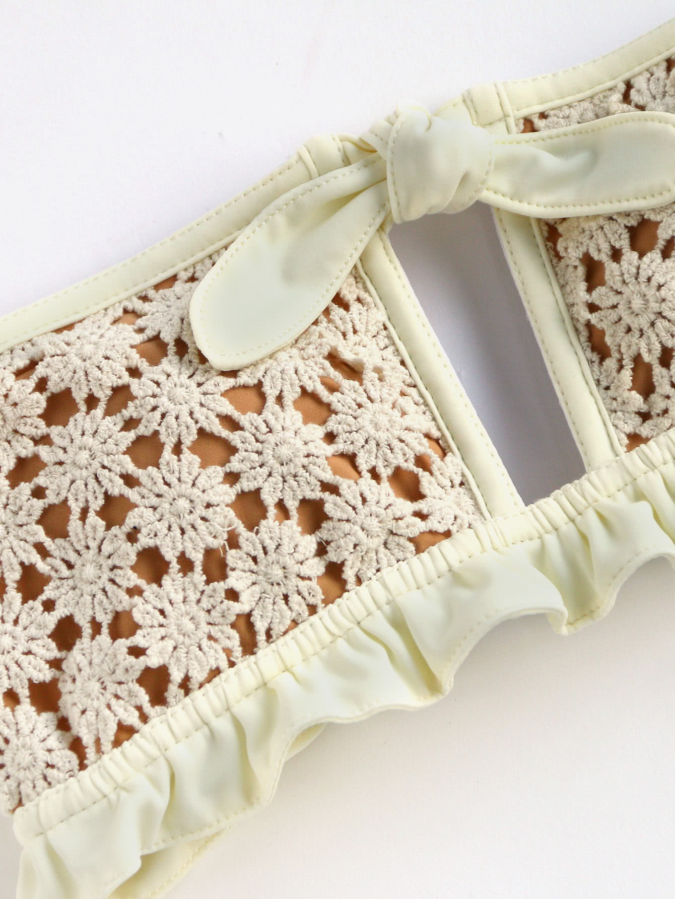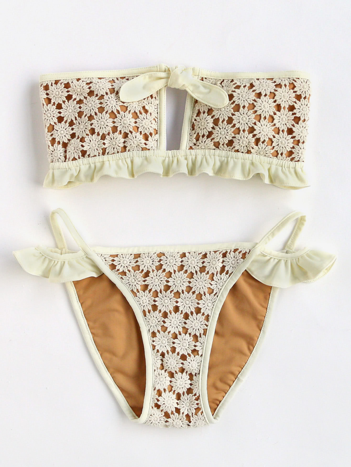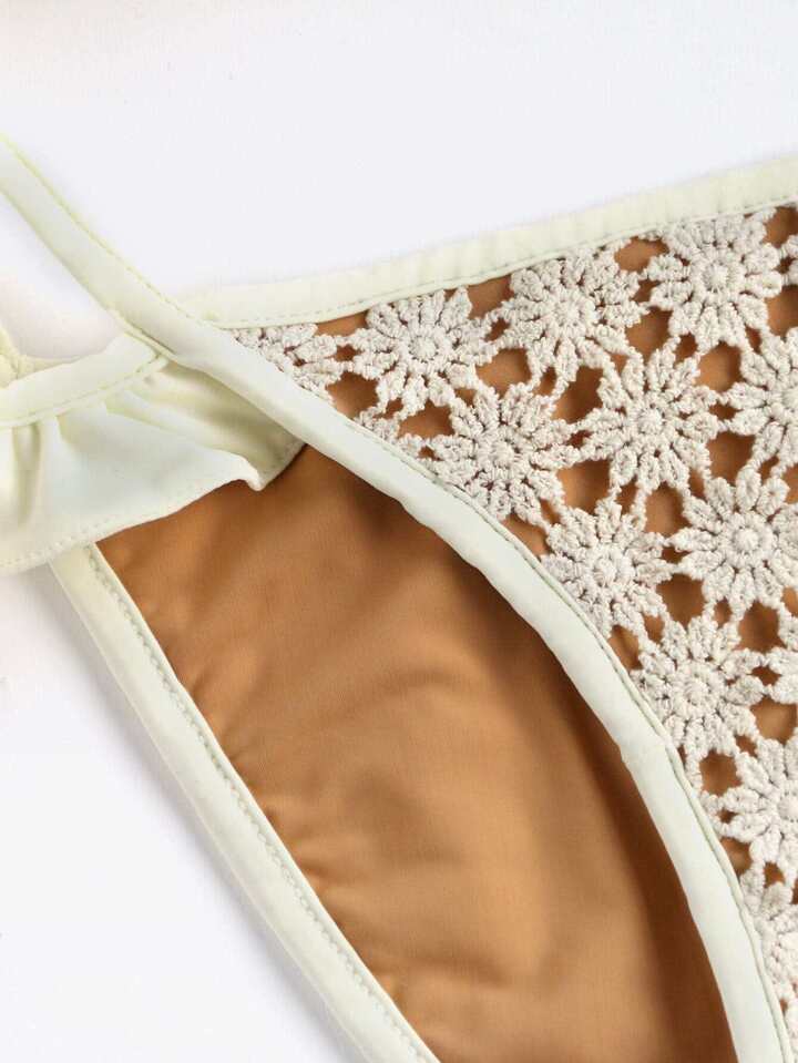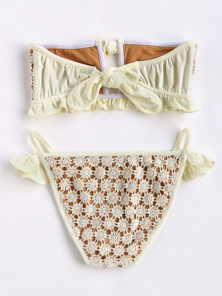 Bandeau Bikini Set mit Raffung Detail, Spitzen und Häkelbesatz
