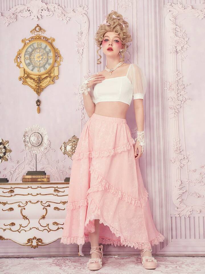 Rock mit Rüschenbesatz, Wickelsaum,