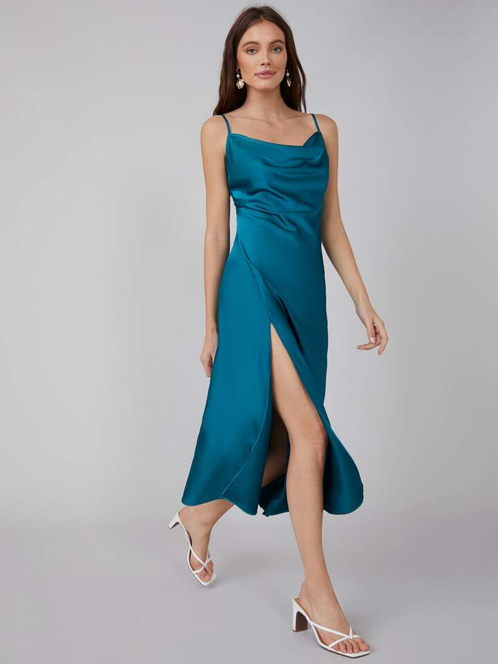 Satin Kleid mit Motorhaubenhals und Schlitz