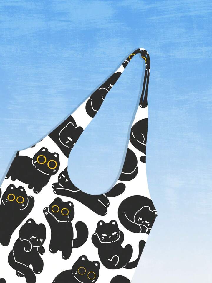 Satchi Collection Schultertasche mit Cartoon Katze Muster, großer Kapazität, für Täglich