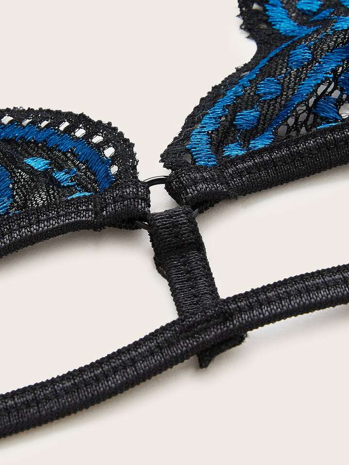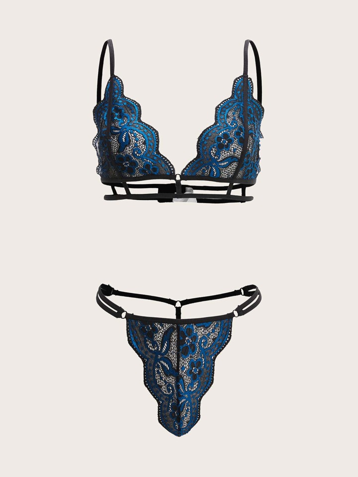 Dessous Set mit Bogenkante und Blumenspitzen