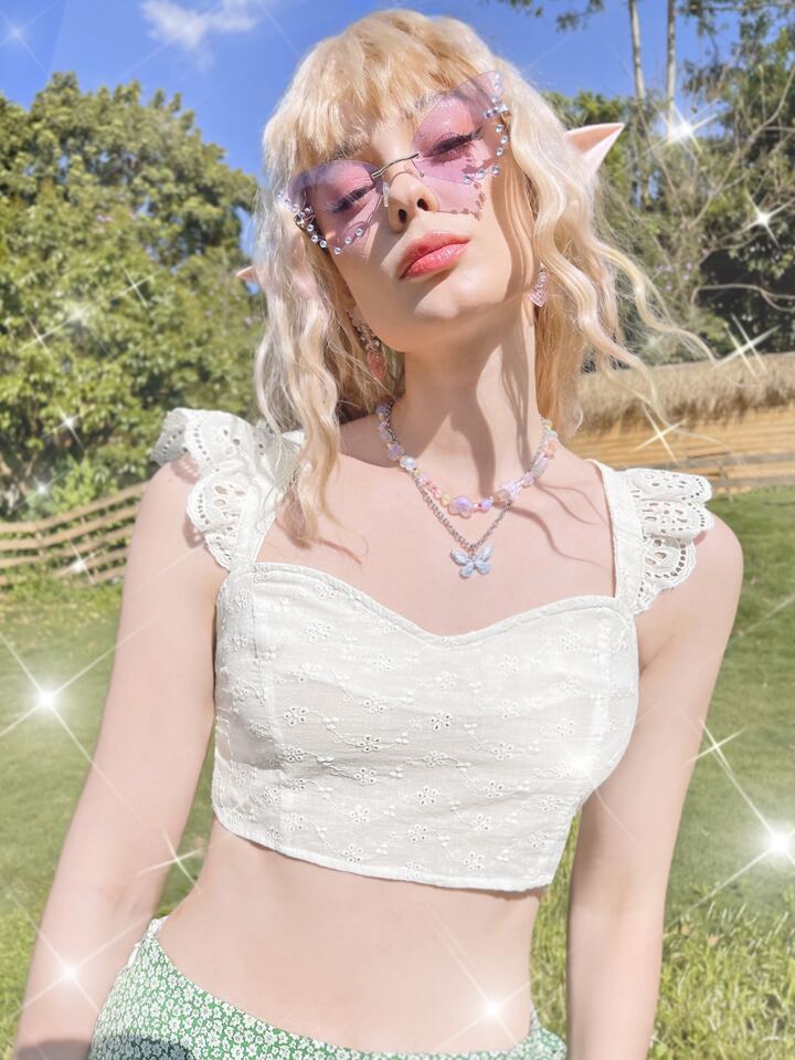 Schiffy Top mit Bogenkante, Band auf Rücken, Crop