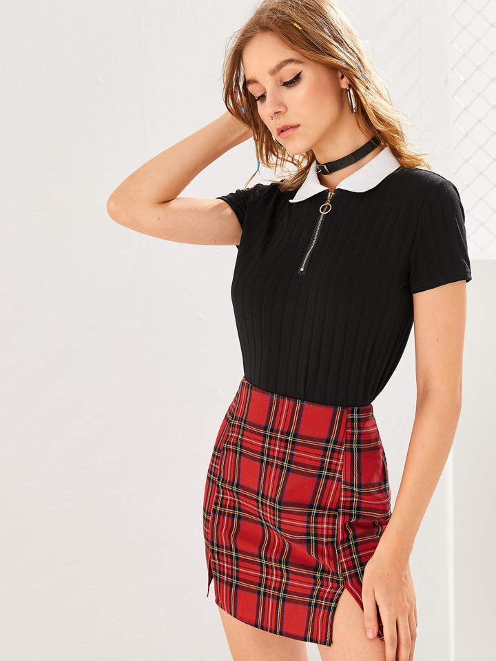 Schwarz Reißverschluss Adrett T-Shirts