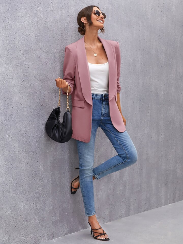 Blazer mit Schalkragen, gesammelten Ärmeln und Klappe Detail