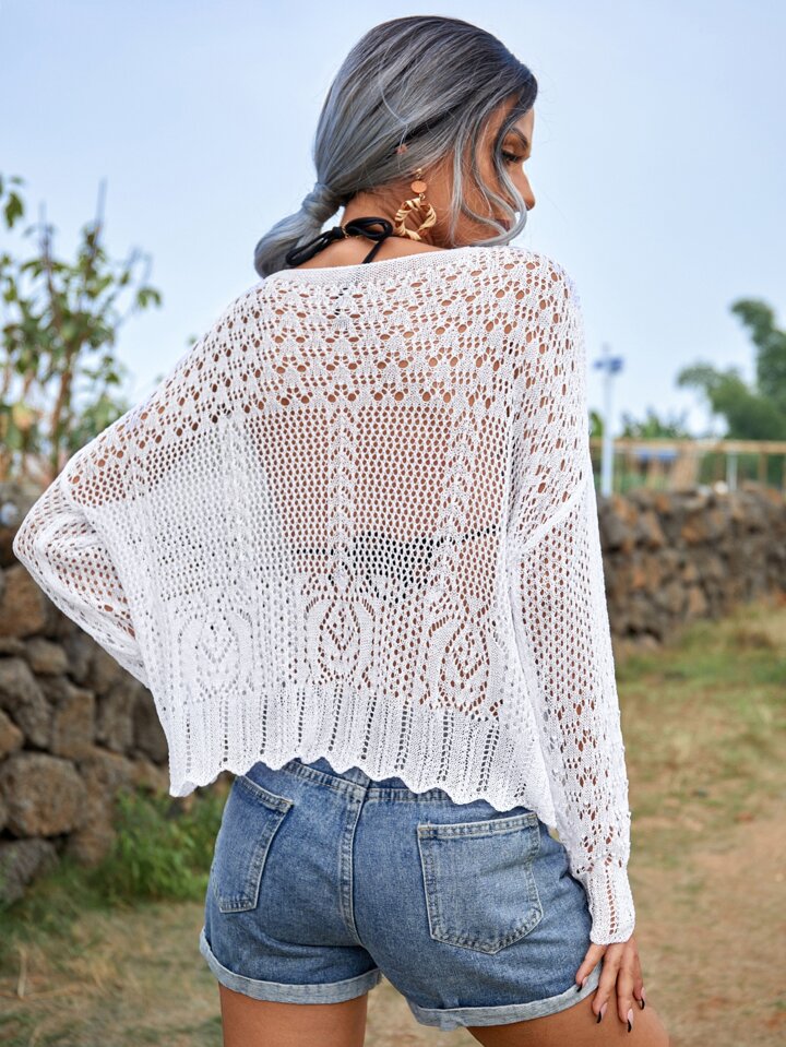 Durchsichtiger Drop Shoulder Pullover mit Stufensaum