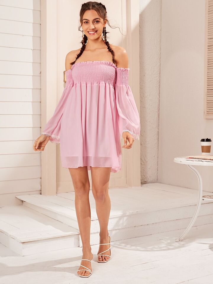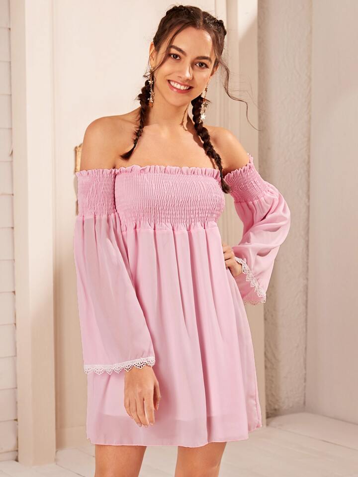 schulterfreies Kleid mit Spitzeneinsatz