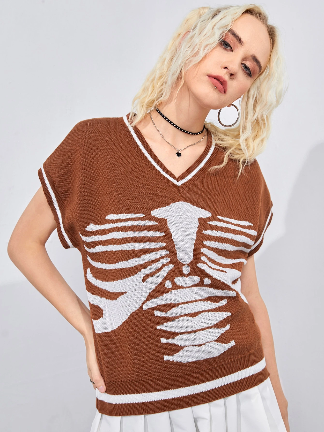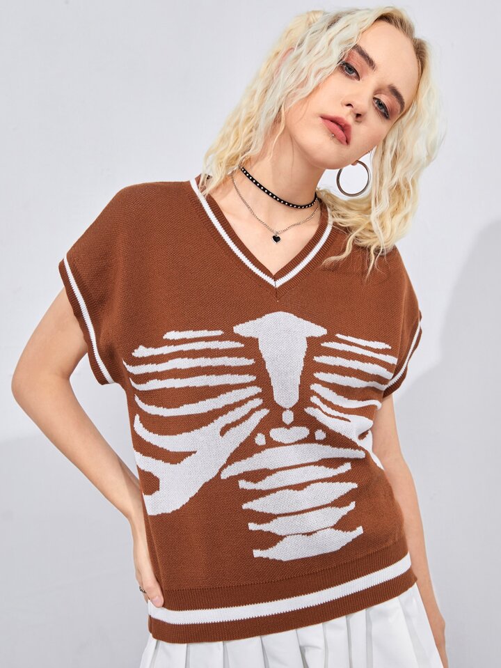 Pullunder mit Skelett Muster