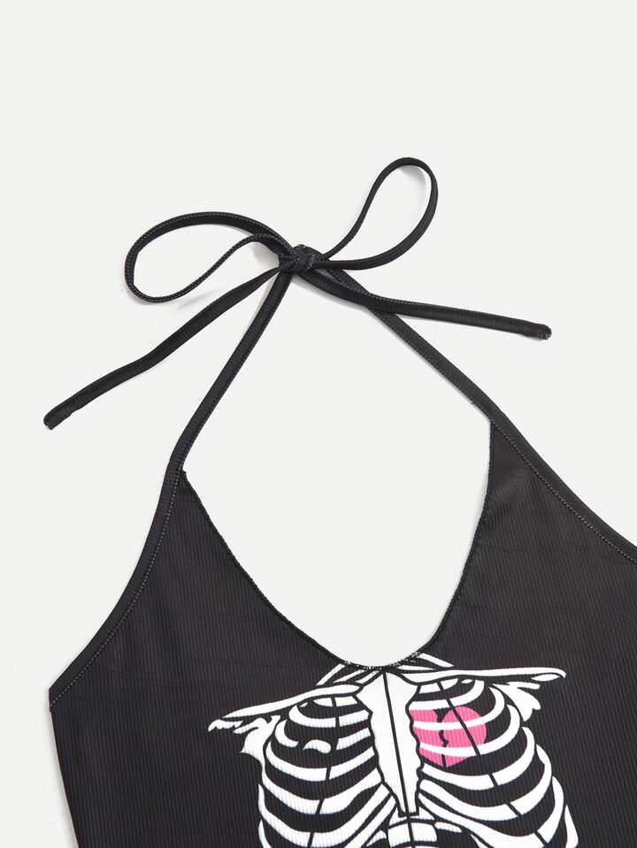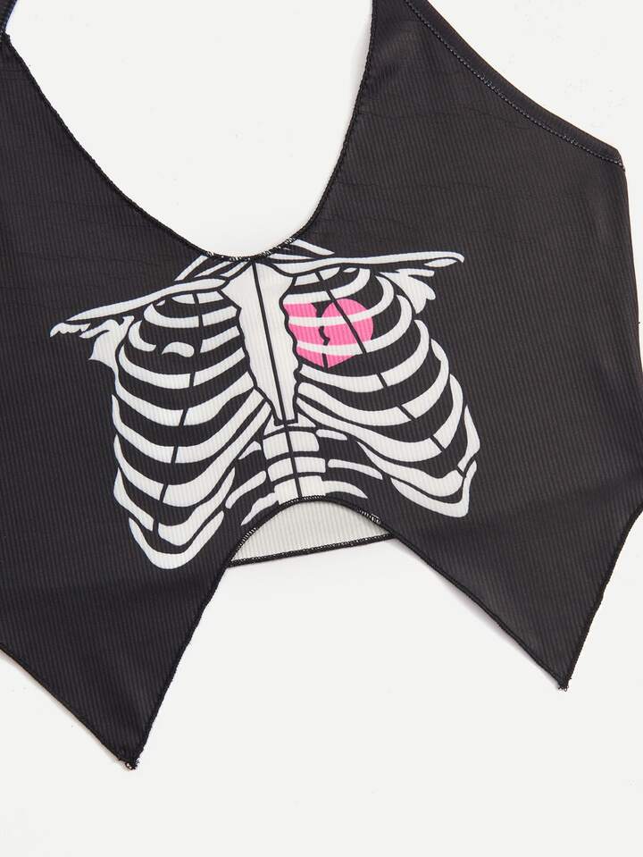 Trägertop mit Skelett Muster, asymmetrischem Saum
