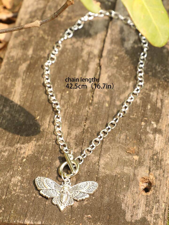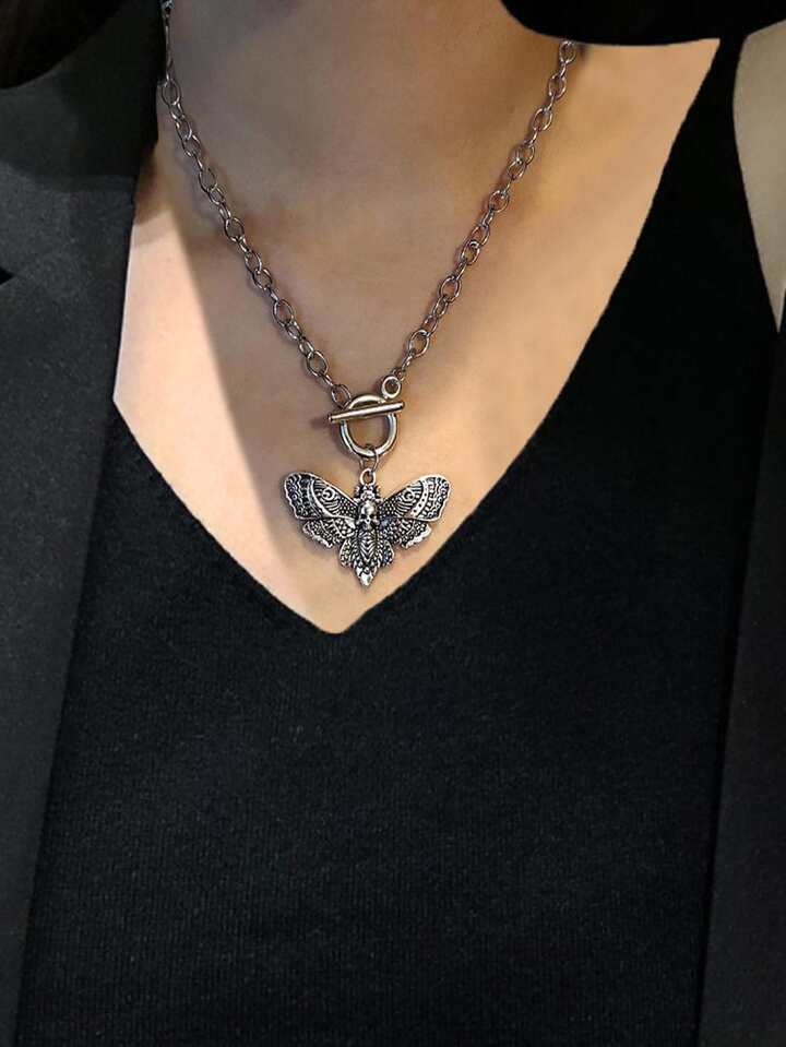 Halskette mit Schädel Dekor, Schmetterling Anhänger