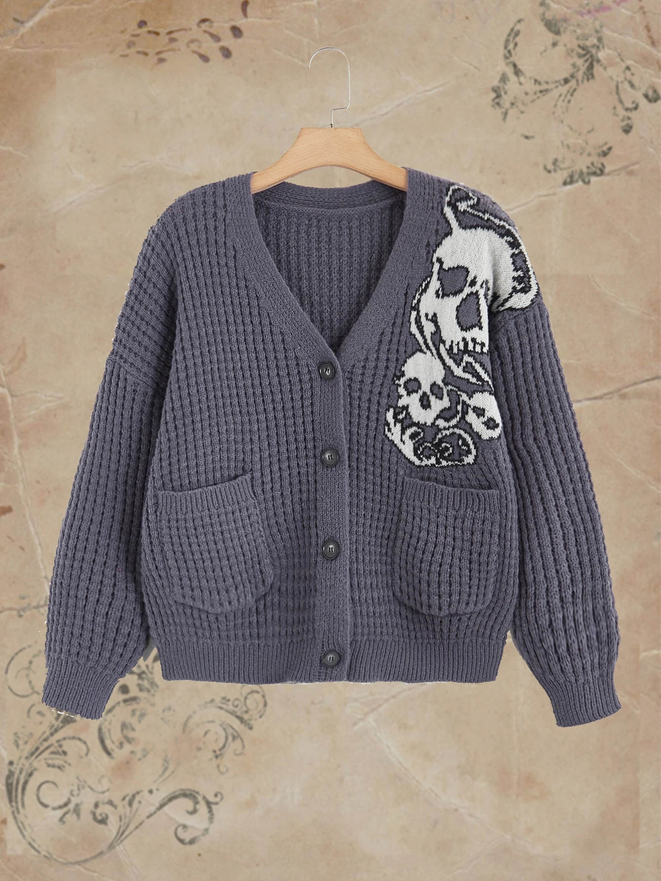 Cardigan mit Schädel Muster, Knopf vorne