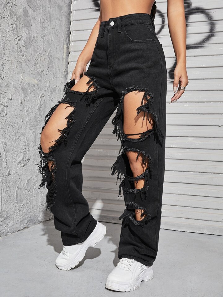 Boyfriend Jeans mit schrägen Taschen, Ausschnitt