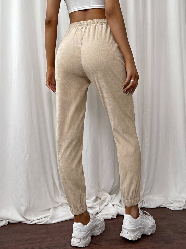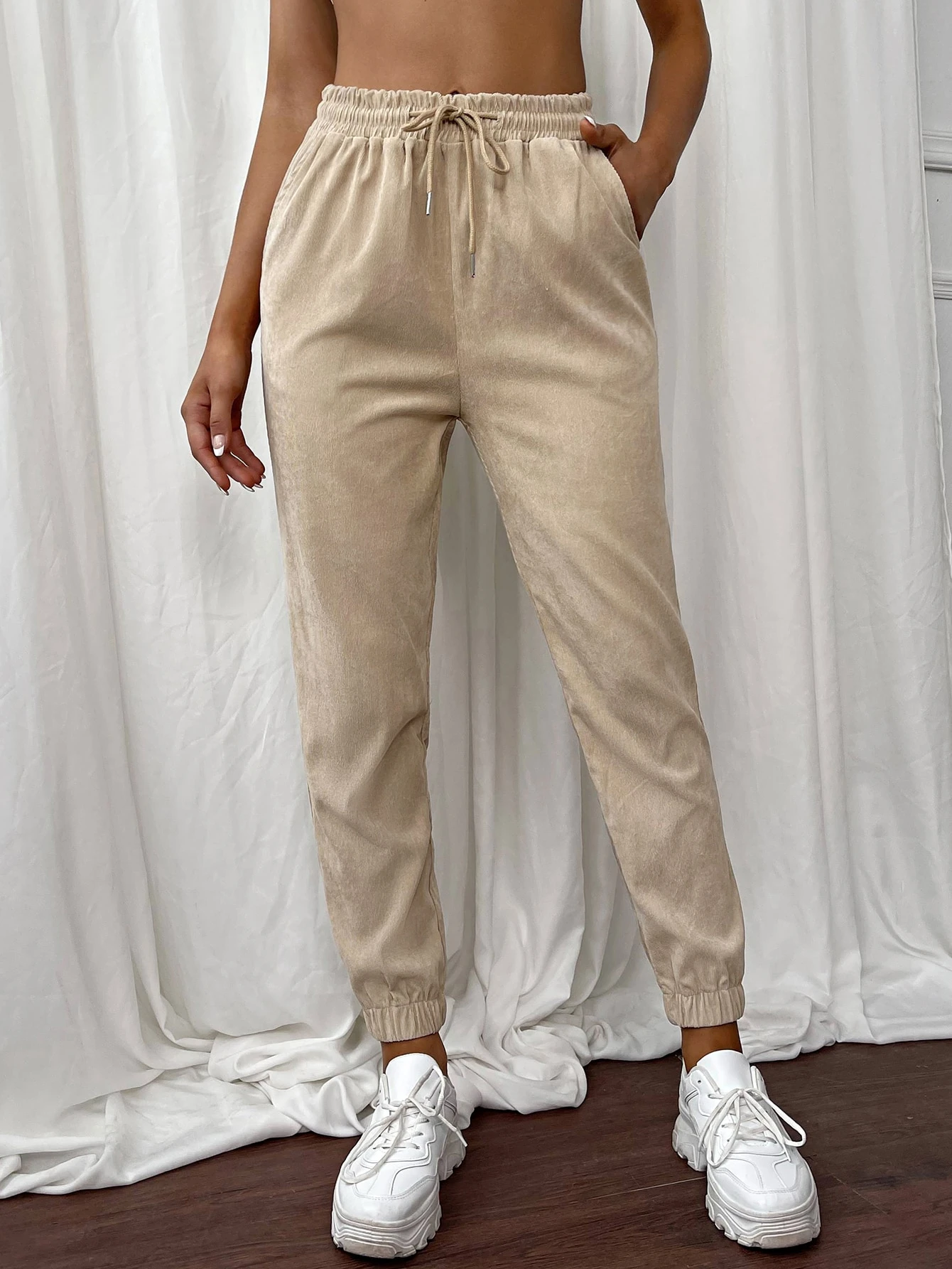 Kord Hose mit schrägen Taschen und Schnürzug-Taille