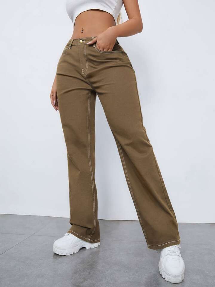 Jeans mit geradem Beinschnitt, schrägen Taschen, Stich